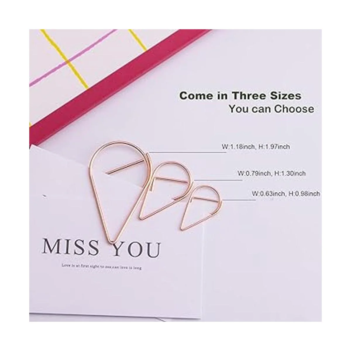 100 clips de papel de oro rosa, tamaño mediano, VenCINK de acero inoxidable suave con forma de gota de clips de alambre para suministros de oficina, boda, mujeres, niñas y estudiantes