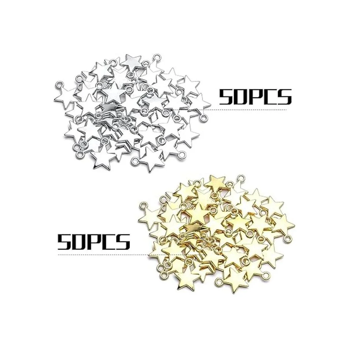 Gran cantidad: cada paquete viene con 50 colgantes de estrella de oro antiguo y 50 colgantes de plata antigua, 100 unidades en total, una gran cantidad para satisfacer todas tus necesidades.