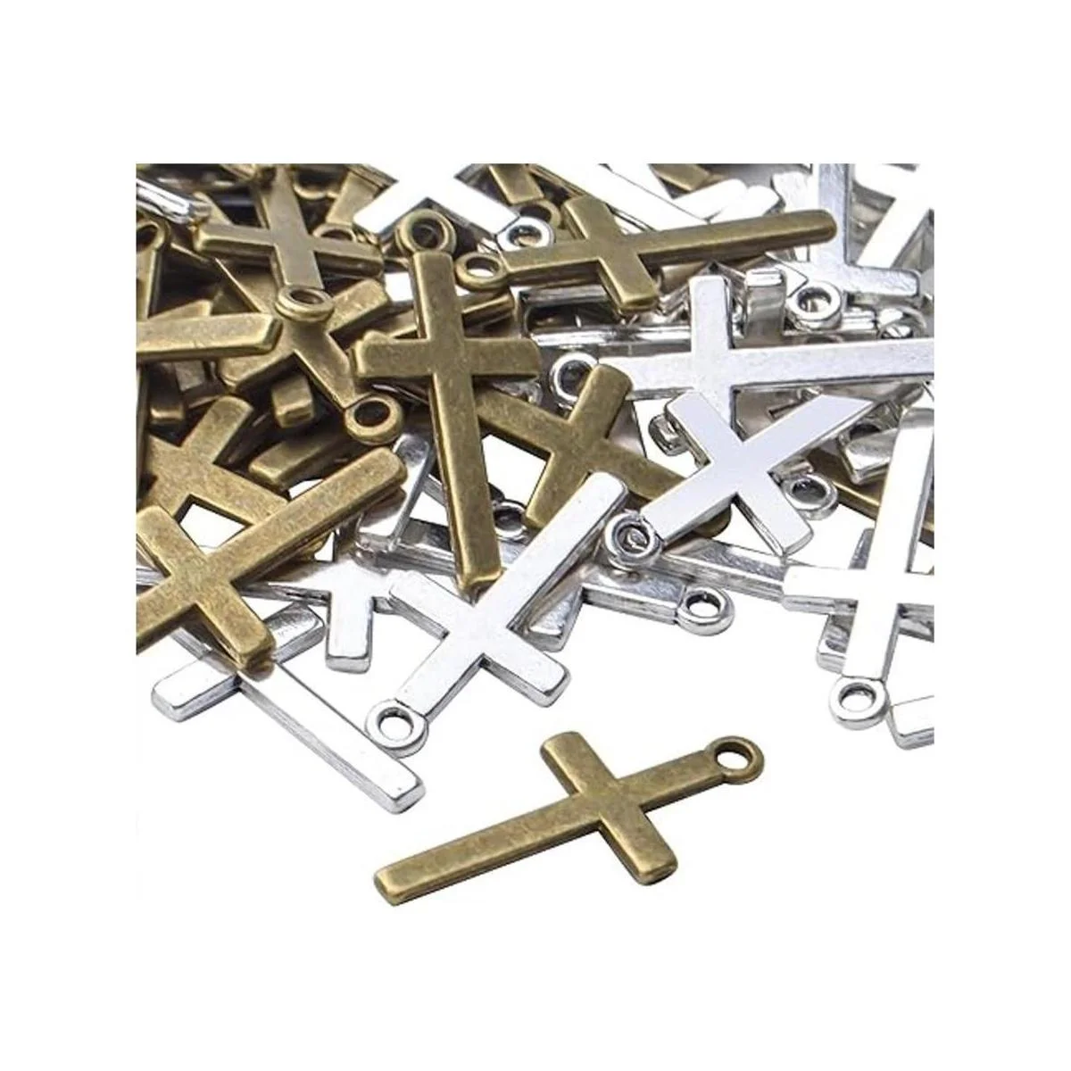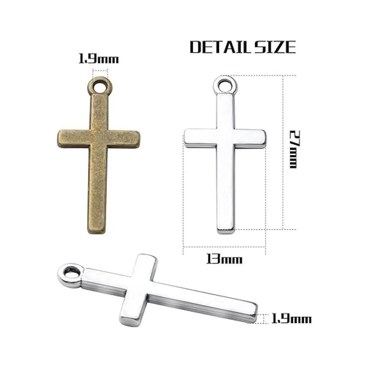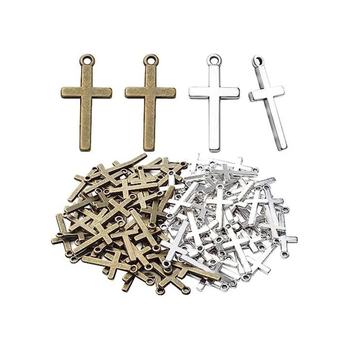 100 colgantes de 27 0.512 in, de aleación de cruz de abalorios, colgantes de joyería para bricolaje, collar, pulsera, joyería, accesorio de artesanía, bronce y plata