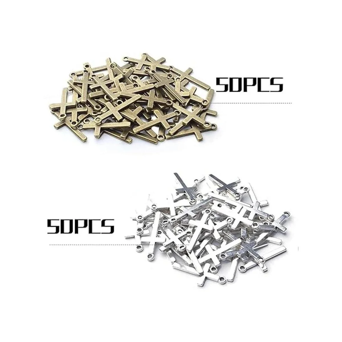 El paquete incluye: 100 abalorios de cruz en total, 2 colores bronce y plata, 50 unidades de cada color. La cantidad suficiente puede satisfacer tus diferentes necesidades.