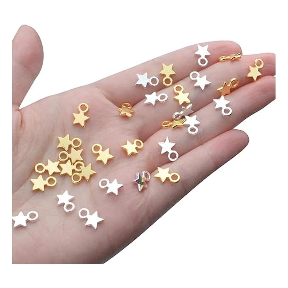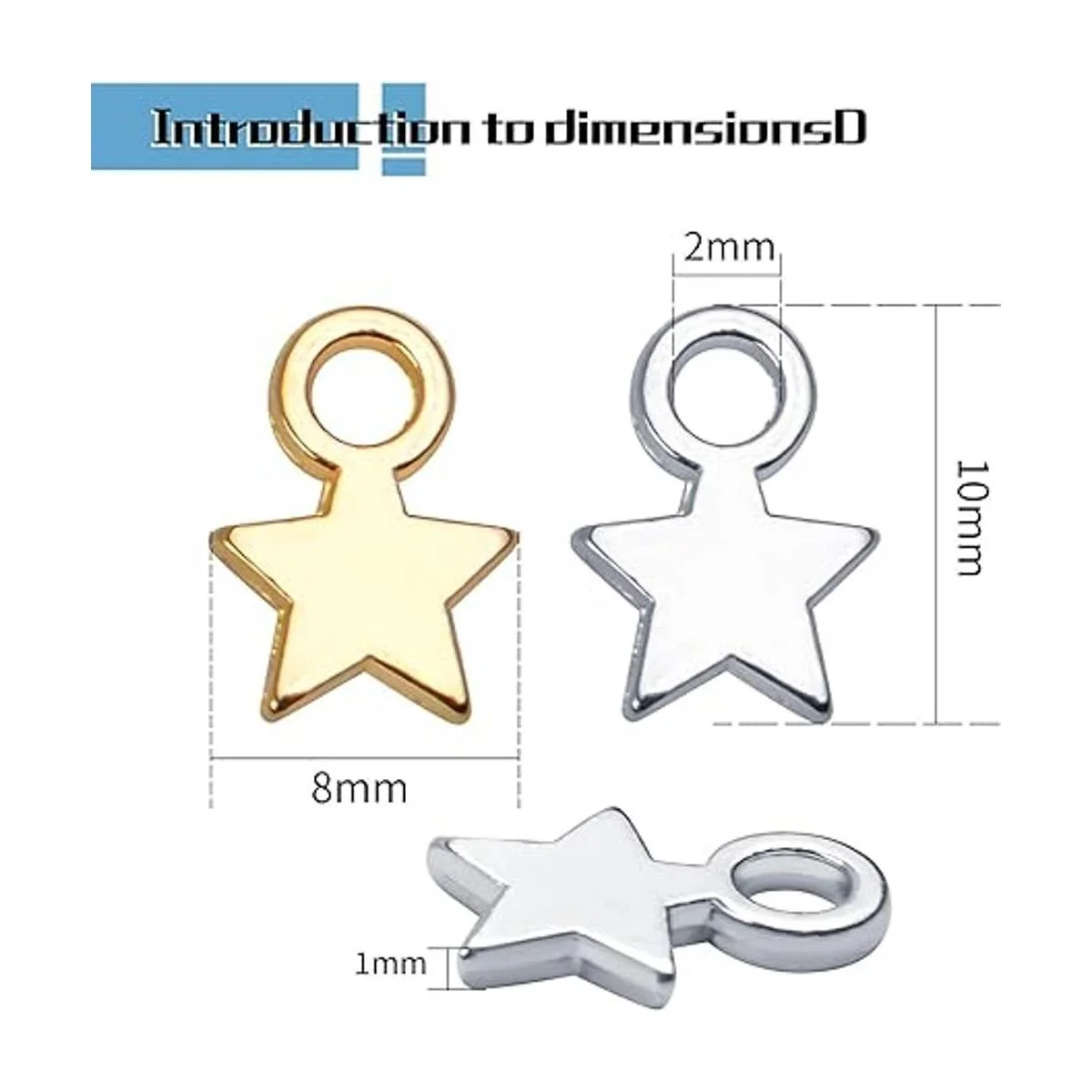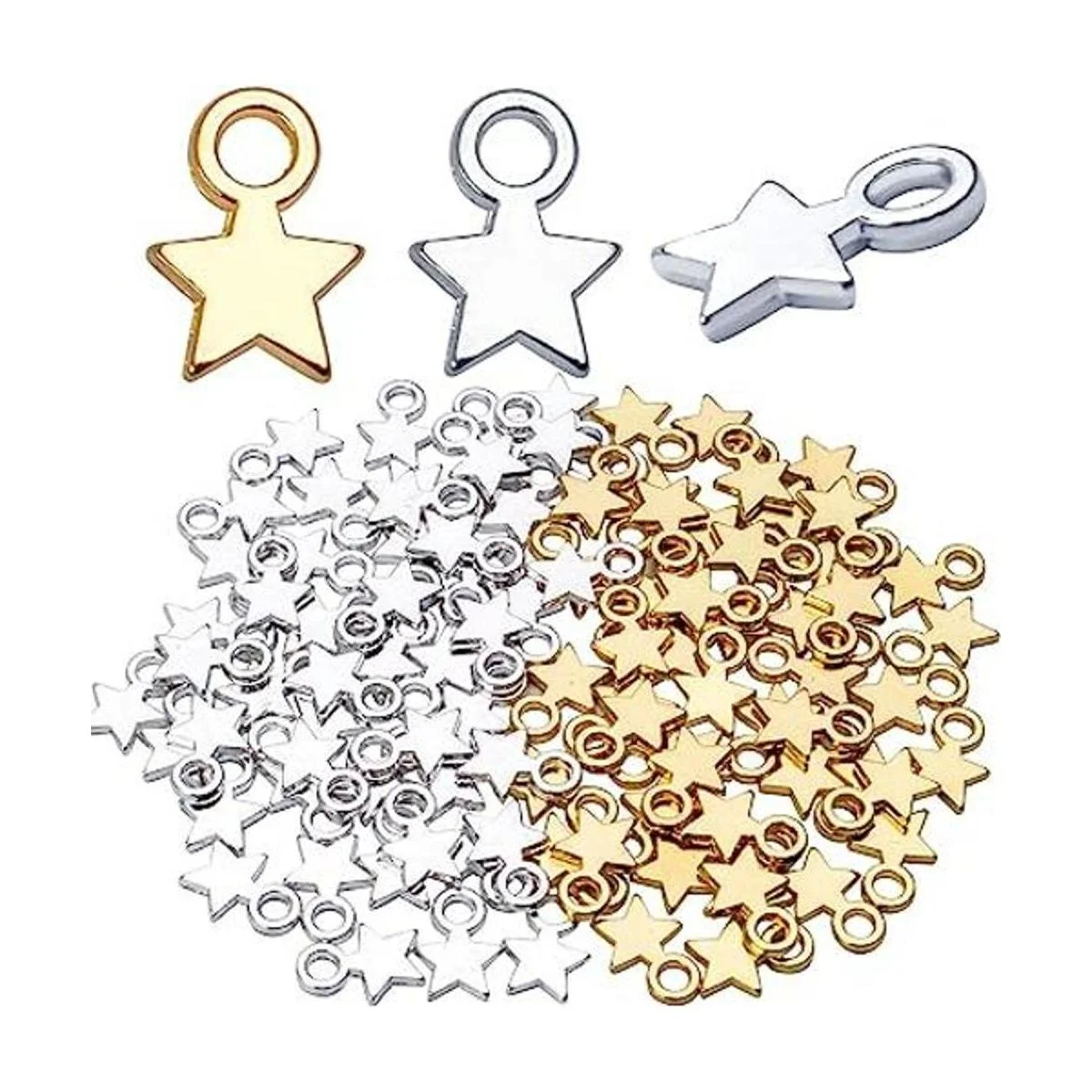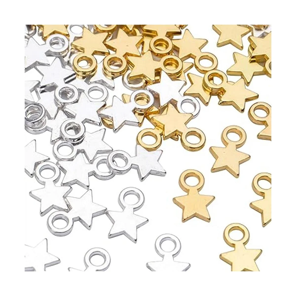 100 colgantes de aleación con forma de estrella para manualidades oro y plata, 0.394 x 0.315 x 0.039 in