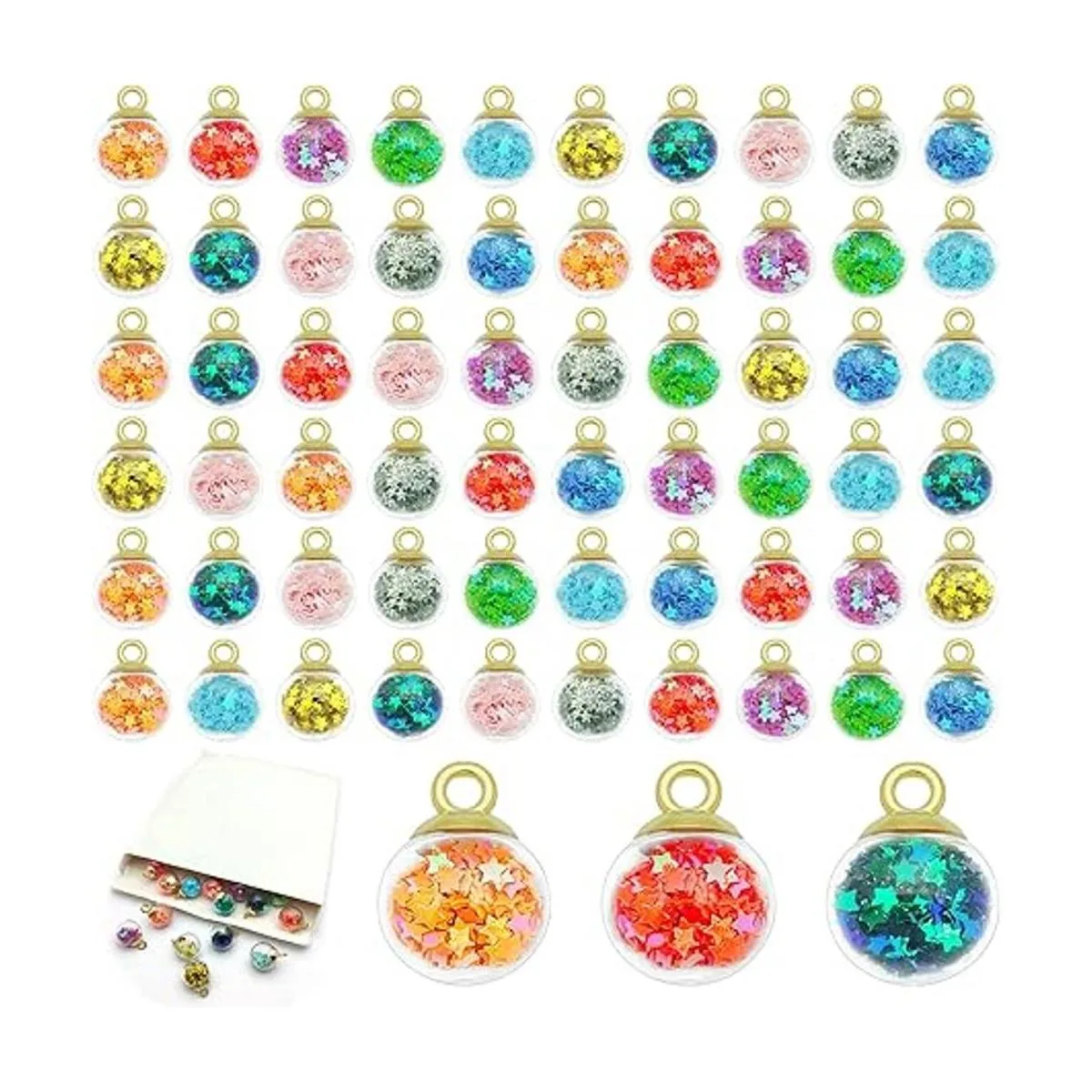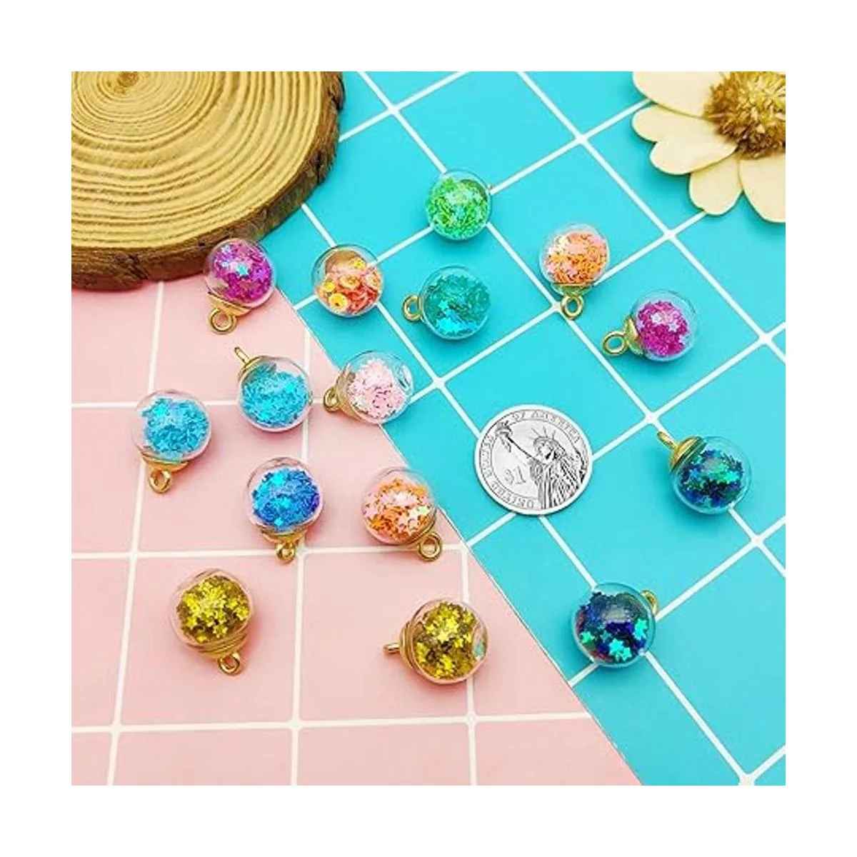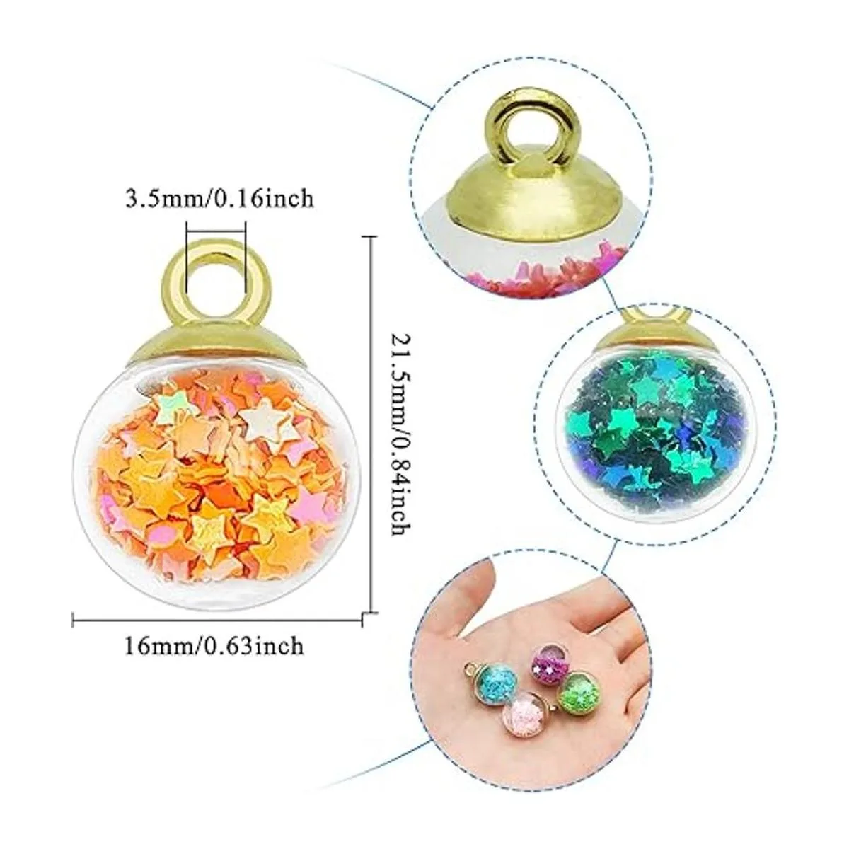 100 colgantes de bola de cristal de 0.630 in con pequeñas cuentas de estrella brillantes, colgantes de bola de cristal mezclado, suministros de fabricación de joyas, accesorio de manualidades para collares, pulseras, aretes, manualidades