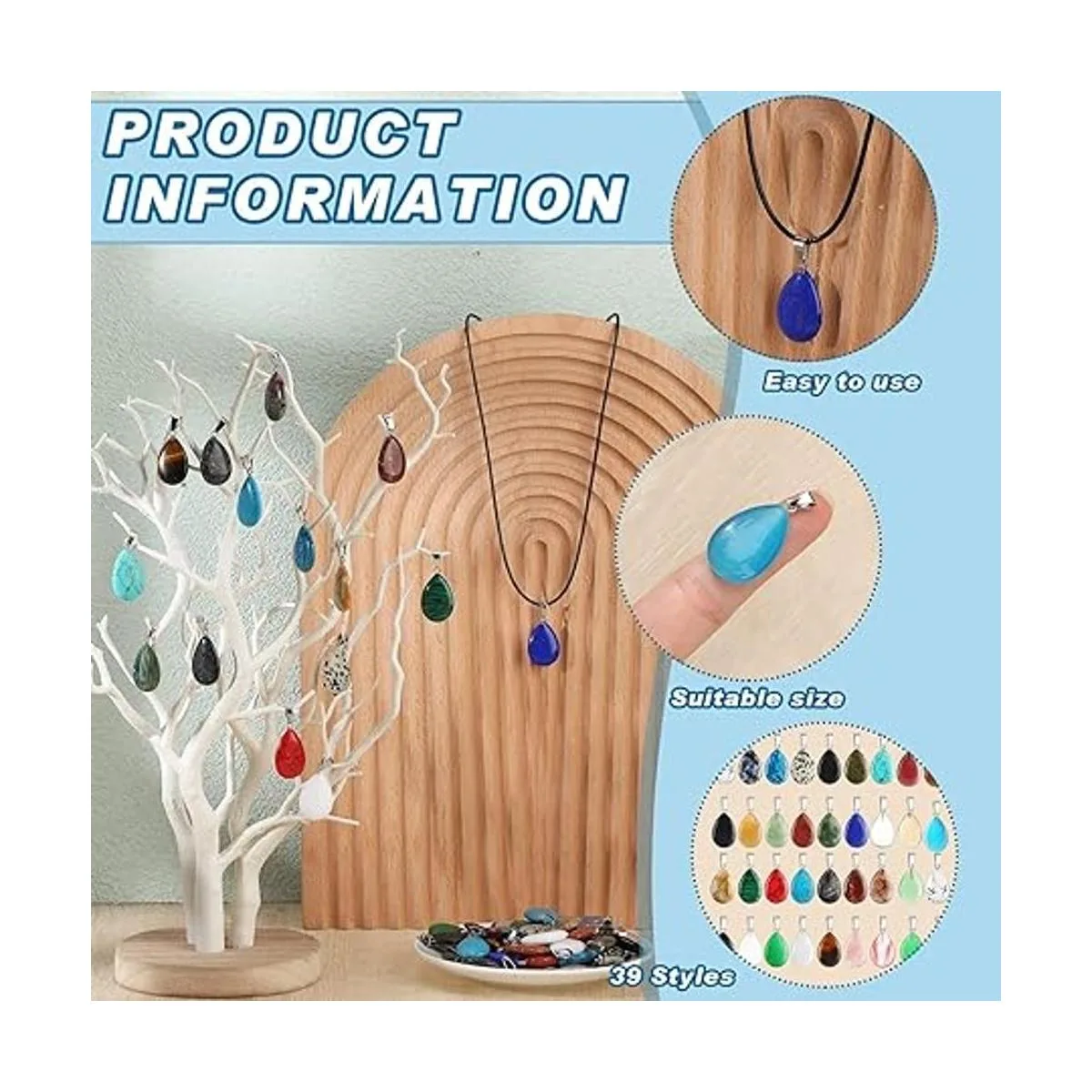 Cantidad abundante para diversas necesidades: recibirás 100 colgantes de piedra de gota de agua para hacer joyas del paquete en suficientes estilos, suficiente para satisfacer tus usos y necesidades de reemplazo, y también puedes compartirlos con otros