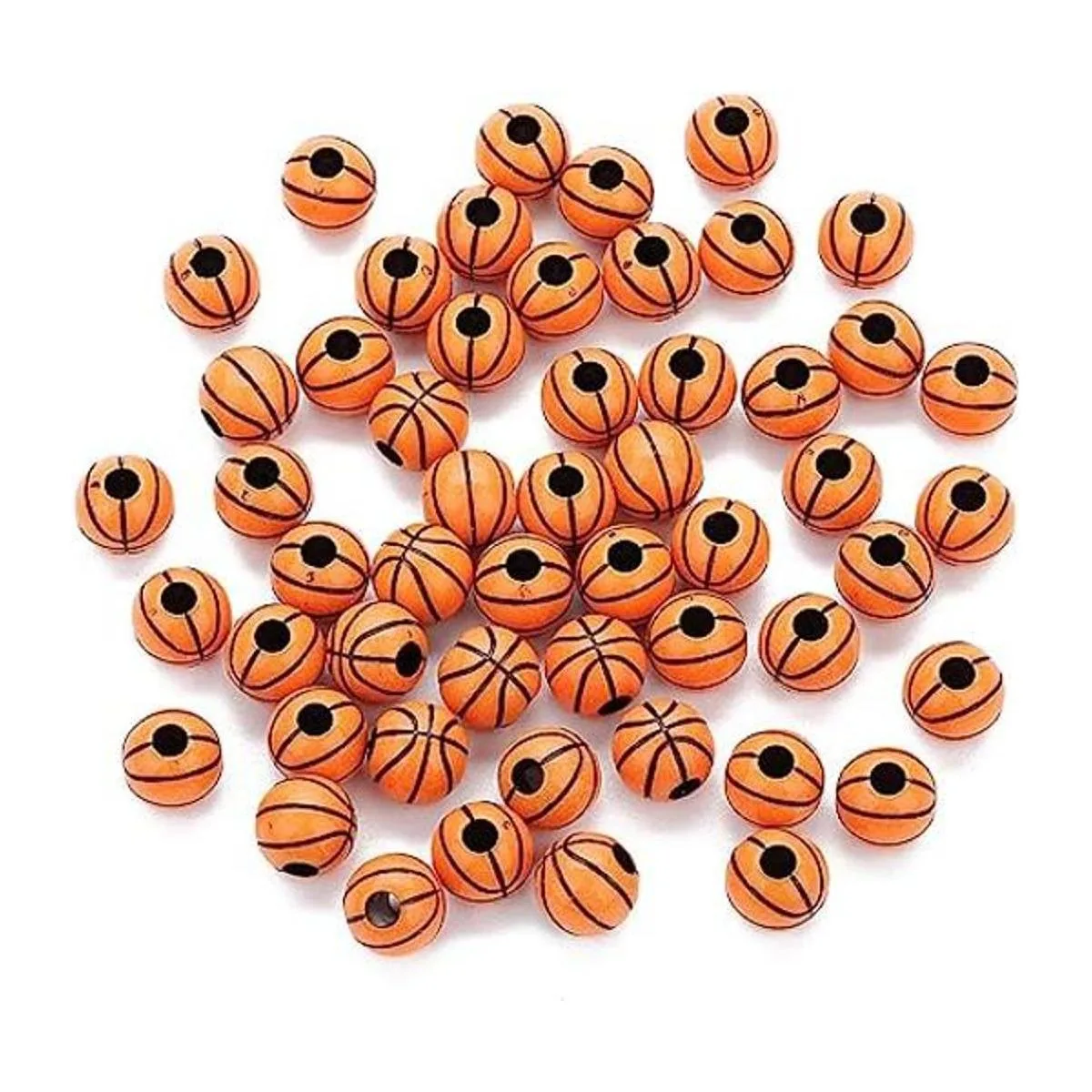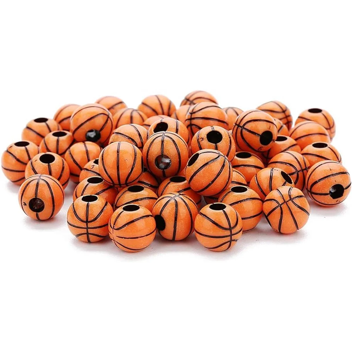 100 cuentas de baloncesto acrílicas de 0.433 in para deportes y manualidades de bricolaje y joyería de arte pulsera collar de pendientes baloncesto