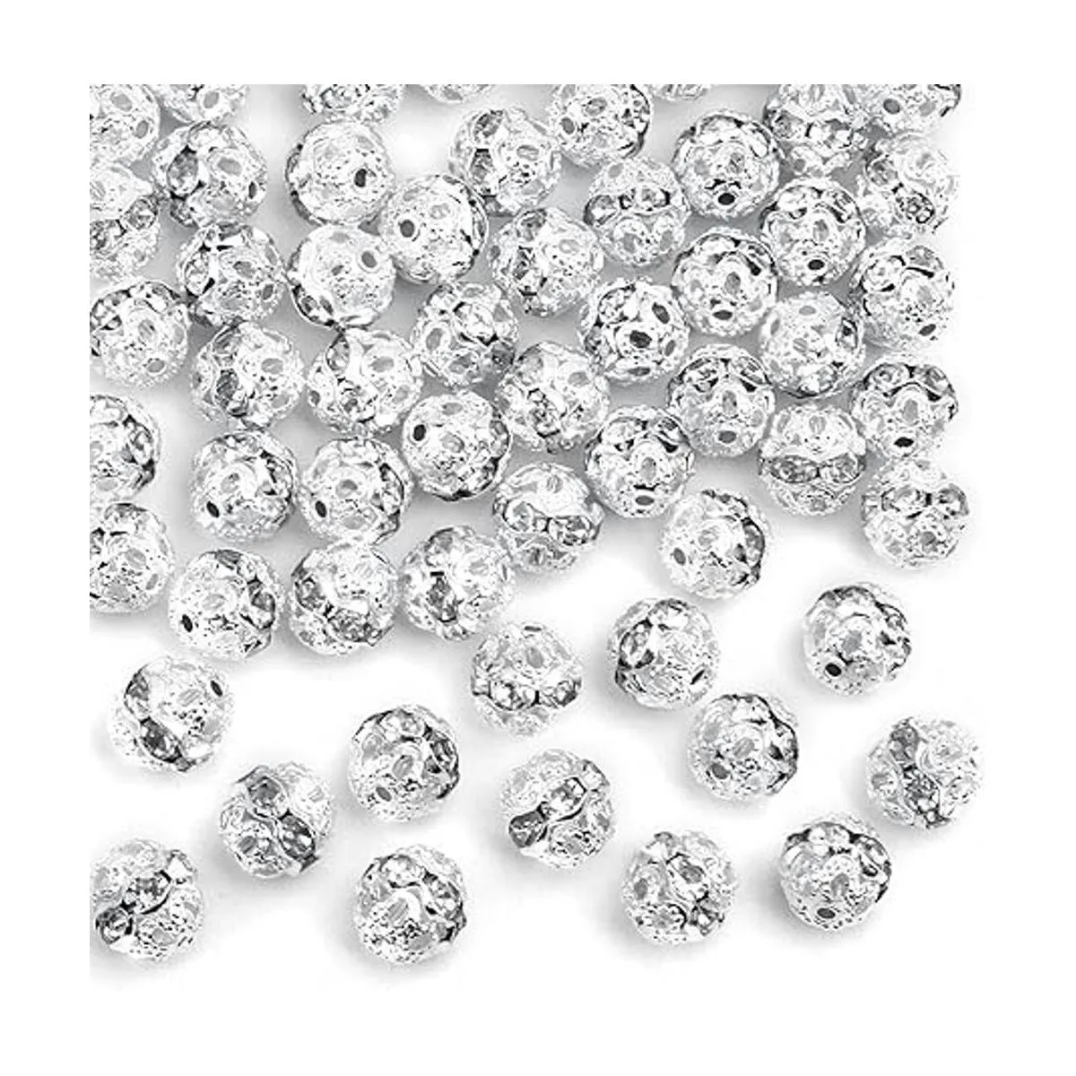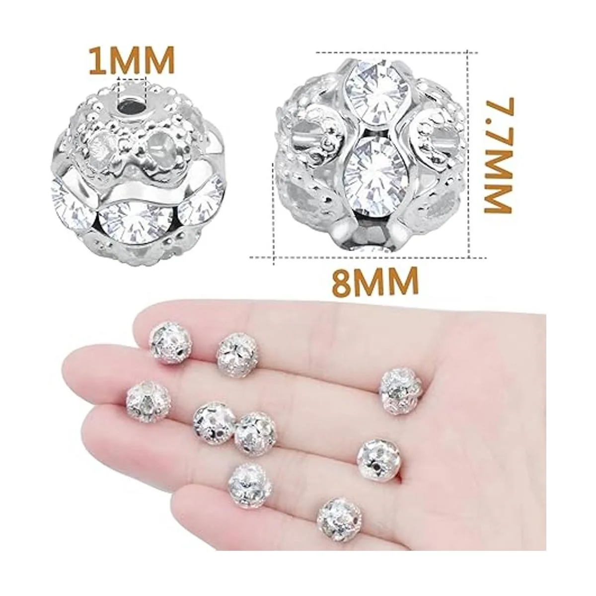 Cantidad suficiente: recibirás 100 cuentas espaciadoras de bolas de diamantes de imitación de plata de 0.315 in en total, serán suficientes y te mantendrán en marcha con todos tus proyectos de bricolaje.