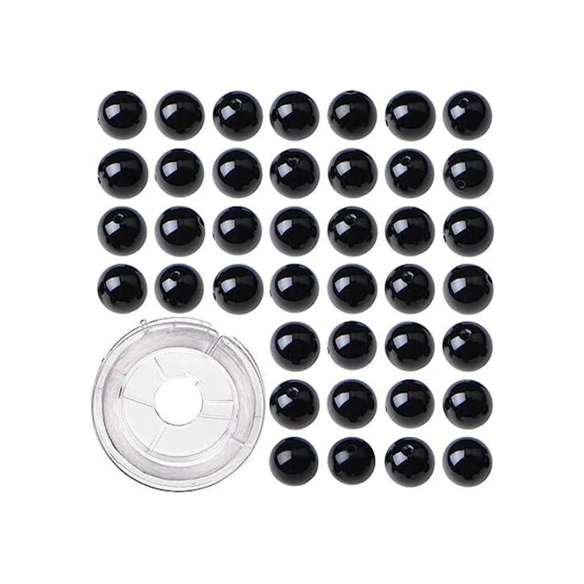 Tamaño: cuentas de piedra de 0.315 pulgadas. Diámetro del agujero: 0.04 pulgadas. Cordón elástico de cristal blanco: 0.024 pulgadas, 32 pies. Cantidad: 100 unidades. Suficiente para hacer 4 brazaletes.