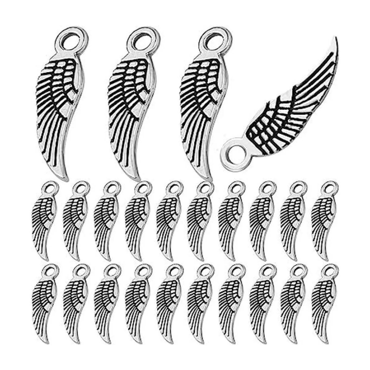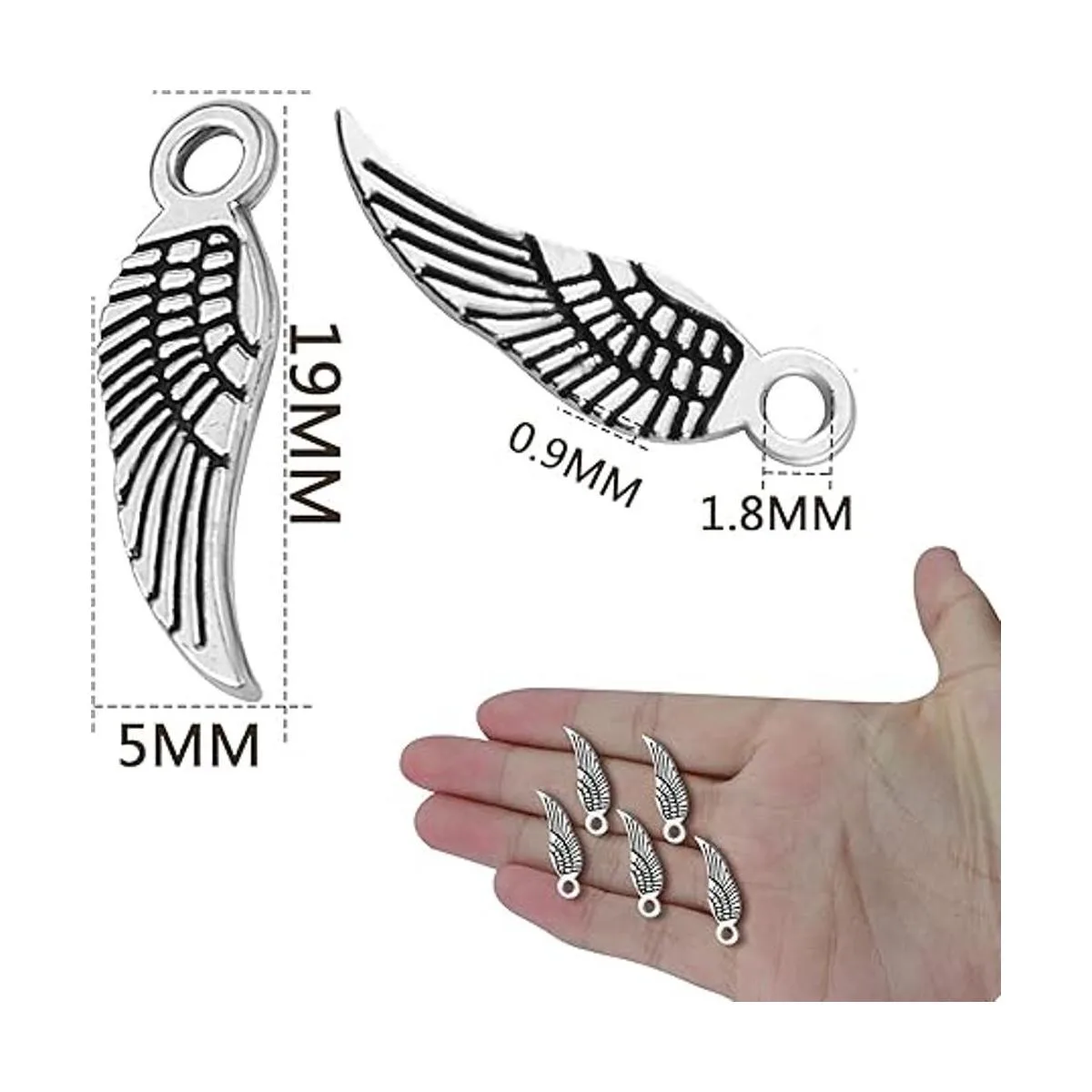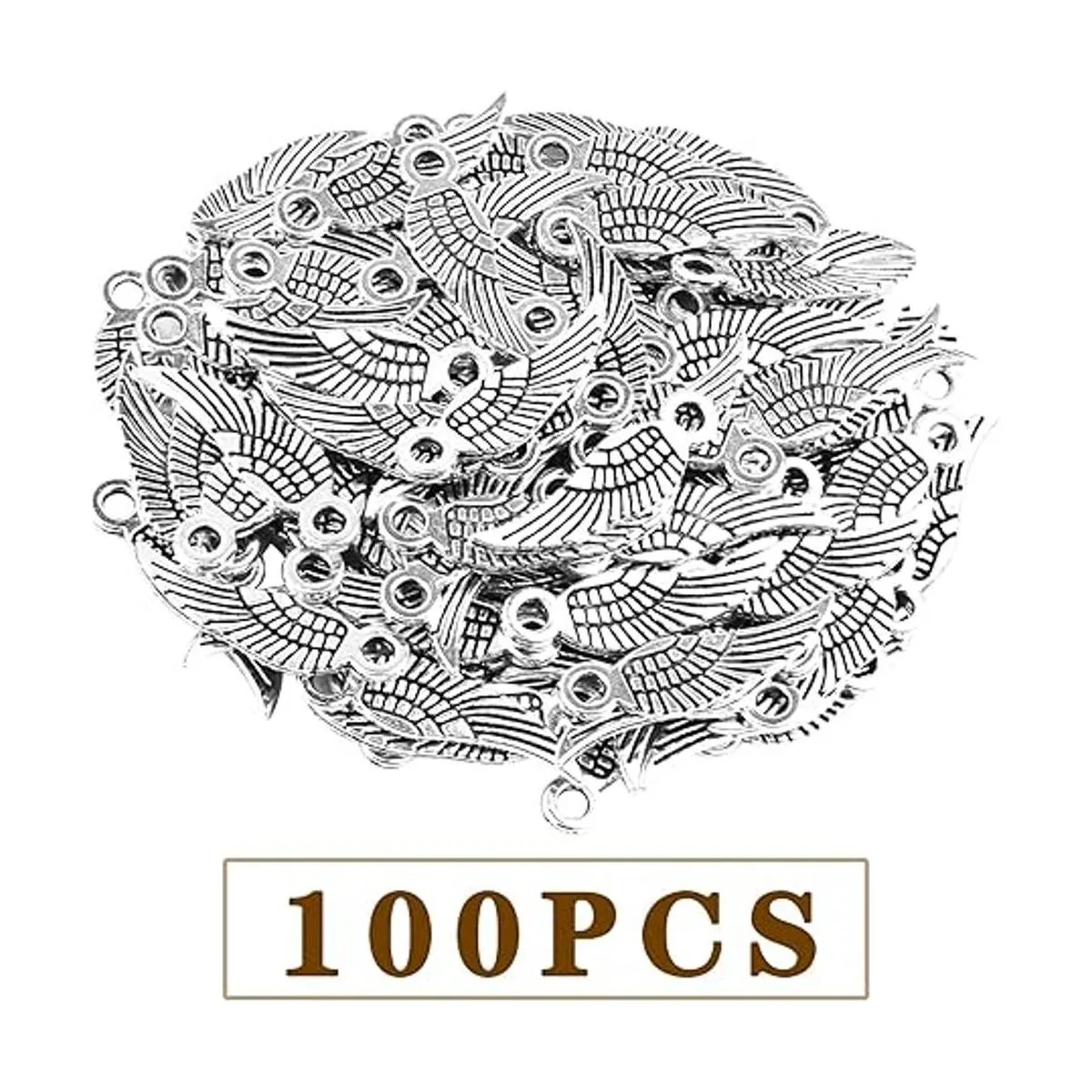 Lo que obtienes: hay 100 colgantes de ala de ángel de plata antigua en el paquete, color clásico y diseño delicado que añadirán un poco de brillo extra a tus manualidades de joyería