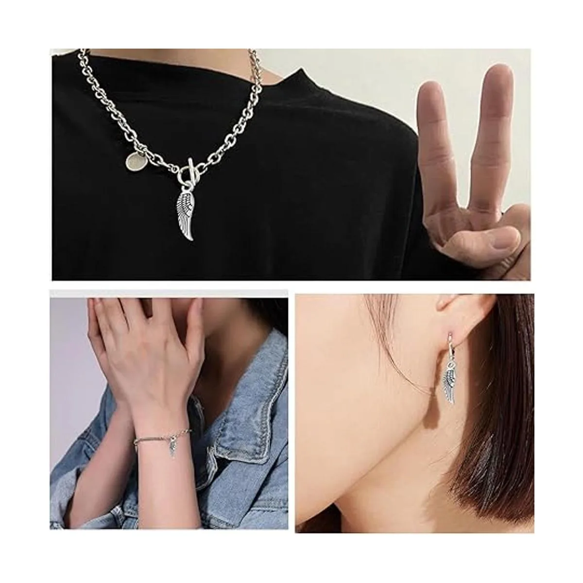 Información de tallas: cada uno de los dijes de ala mide aproximadamente 0.748 in x 0.197 in x 0.035 in, el agujero es de 0.071 in. Los colgantes de tamaño adecuado se pueden combinar bien con tus tipos de atuendos