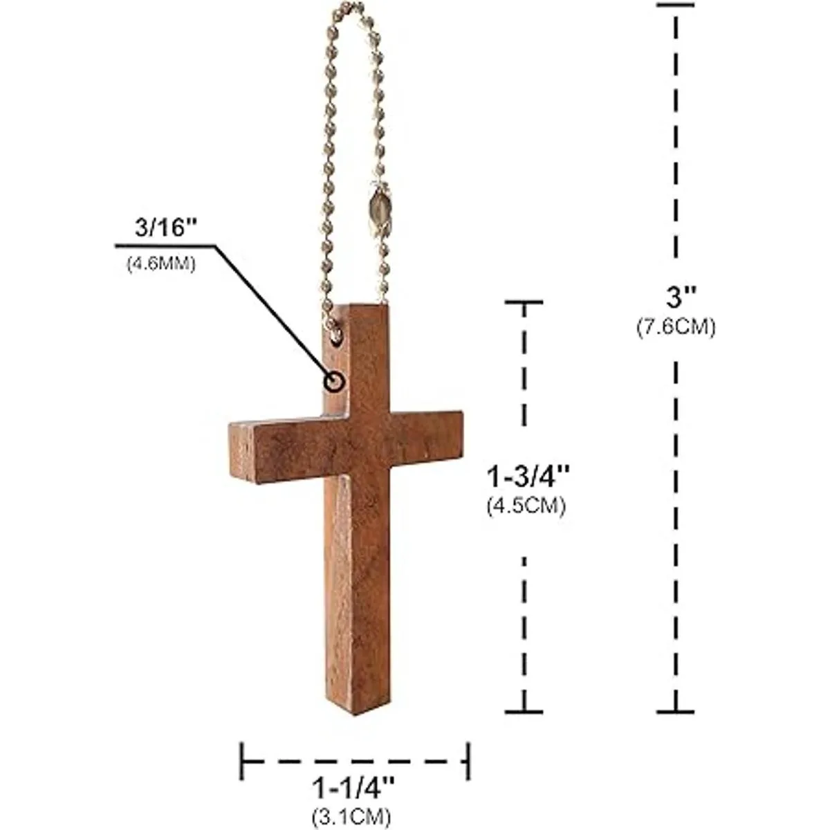 Dimensiones: el dije de cruz de madera mide 1.2 x 1.75 x 0.2 pulgadas y la cadena mide 2.75 pulgadas de largo