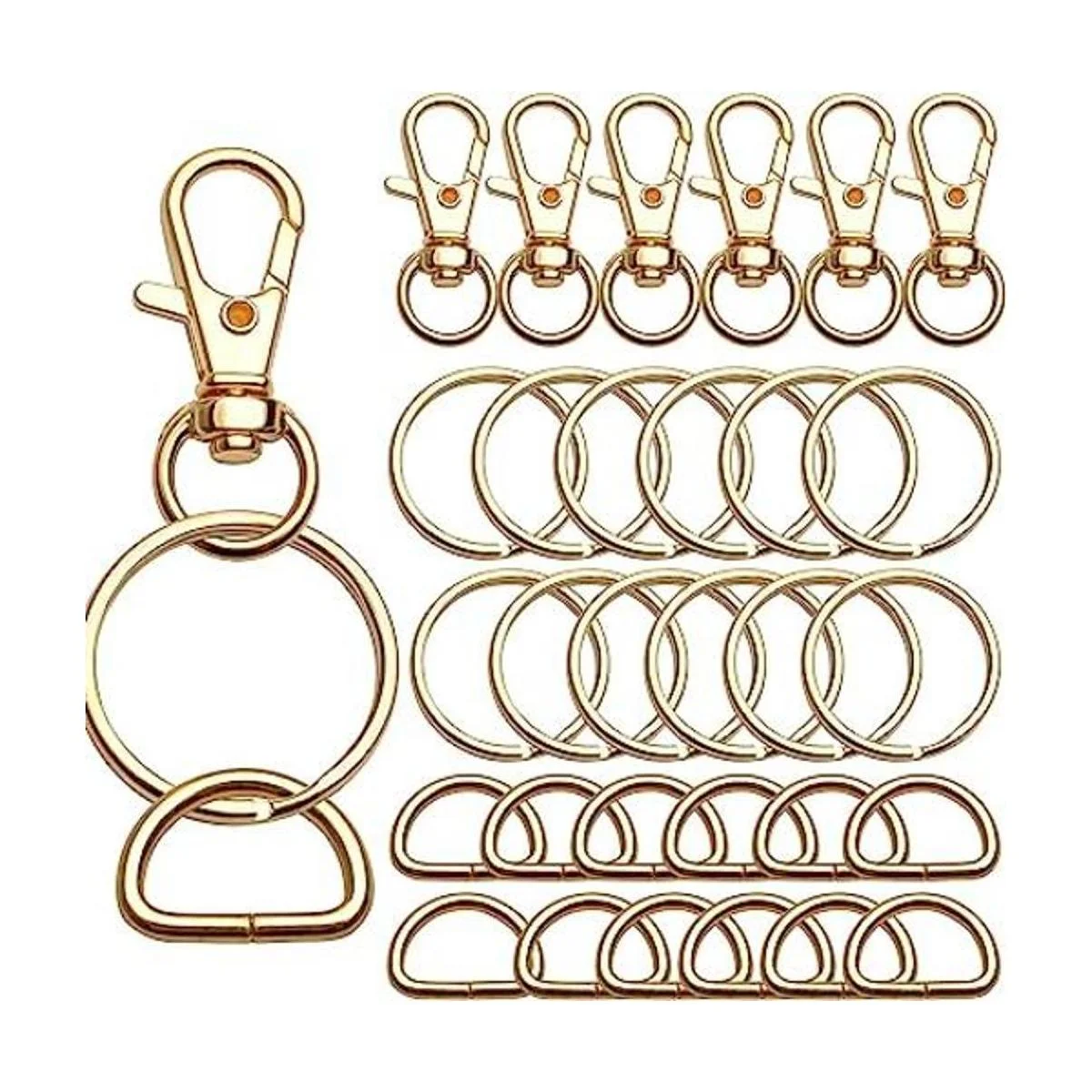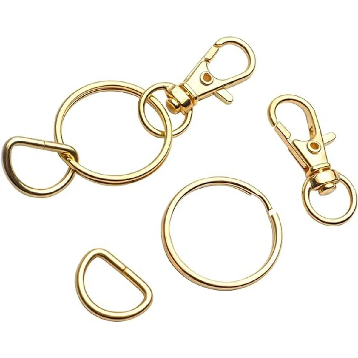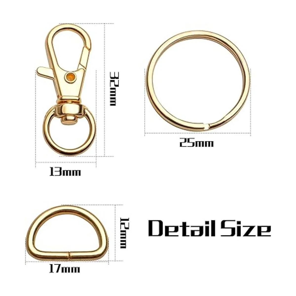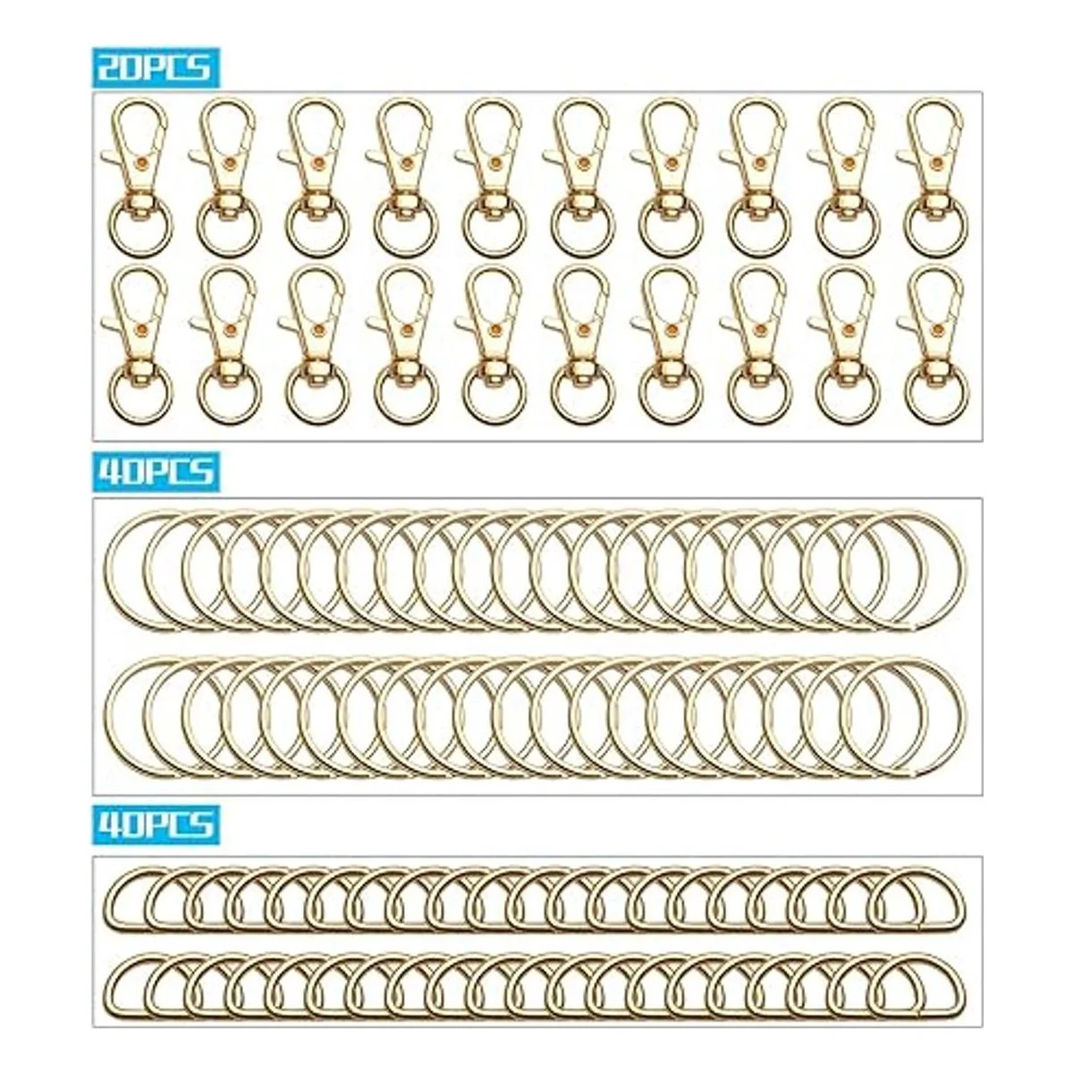 Paquete de 100 unidades. : Viene con 20 cierres de langosta, 40 llaveros y 40 anillos en D, 100 unidades en total, perfecto para hacer bolsos, proyectos de manualidades, joyería y etc.