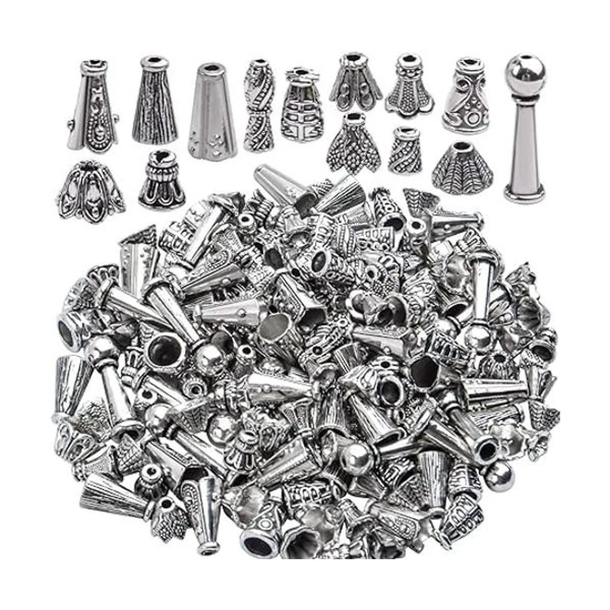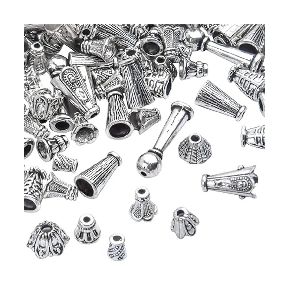 100 Gram About 130190pcs Antique Silver Cone Bead Caps Flower End Caps Tassel End Cap for Jewelry Making Crafts DIY