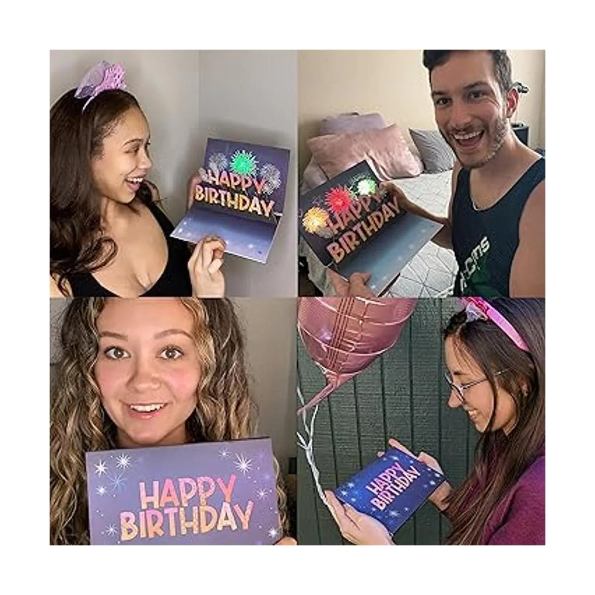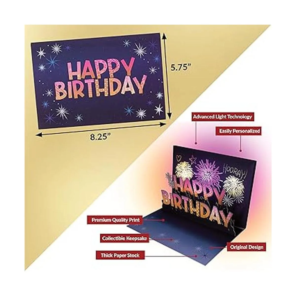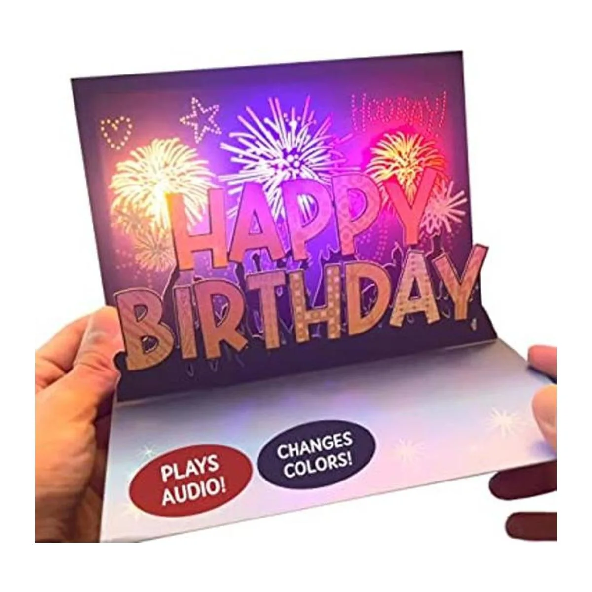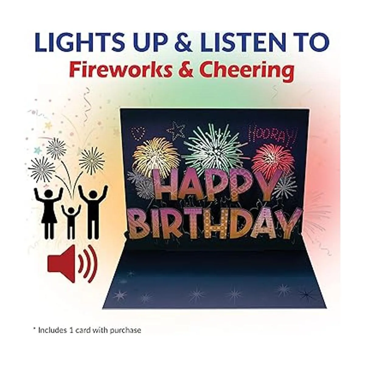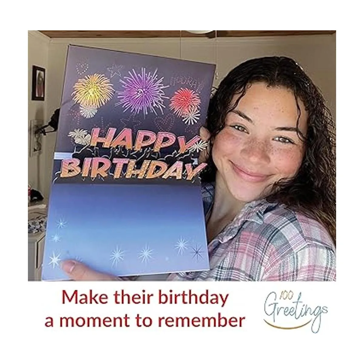 100 Greetings Tarjeta desplegable de cumpleaños de luces y sonido fuegos artificiales y animaciones, tarjeta de feliz cumpleaños para esposa, marido, él, ella, mujeres y hombres, tarjetas de felicitación de cumpleaños emergentes, solo 1 tarjeta