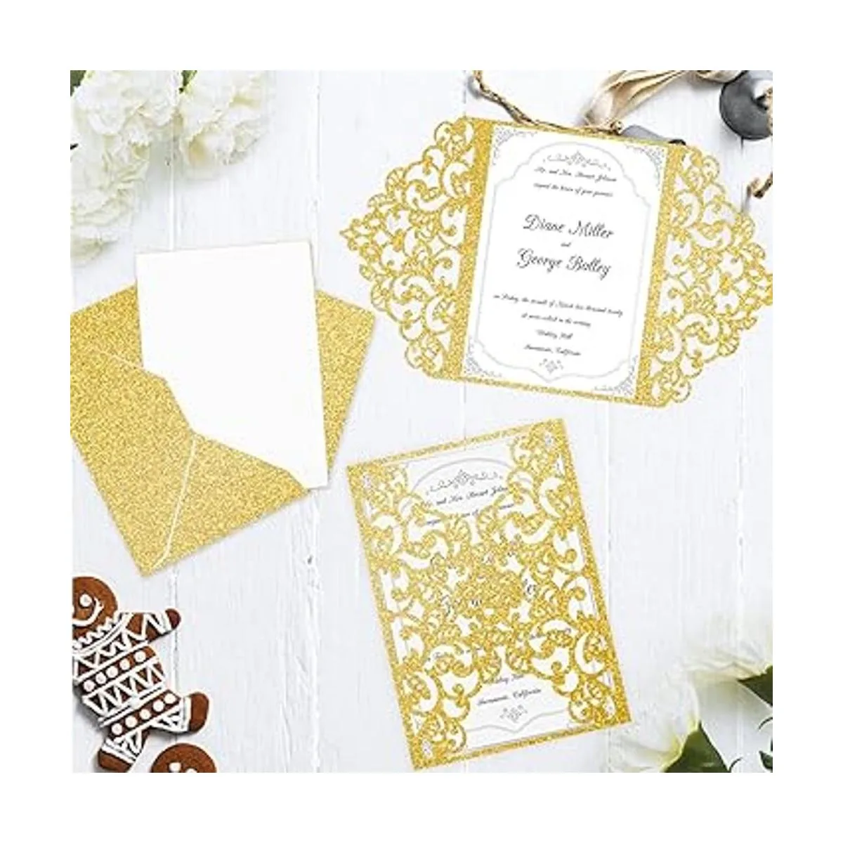 100 hojas de cartulina dorada con purpurina de 8.5 x 11 pulgadas, doble cara, Goefun de 80 libras, sin desprendimiento, papel brillante para bodas, invitaciones, cumpleaños, proyectos de manualidades, aniversario