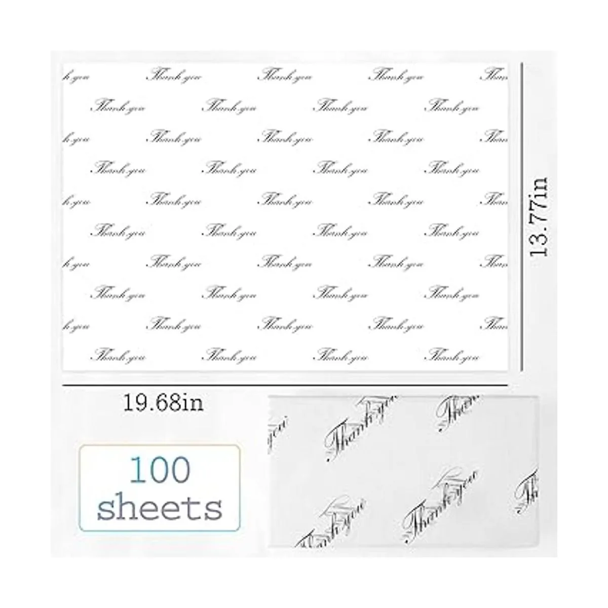 Diseño de agradecimiento negro: el papel de seda tiene fondo blanco y patrón de agradecimiento negro. Es muy hermoso. Papel de seda negro perfecto para pequeñas empresas.