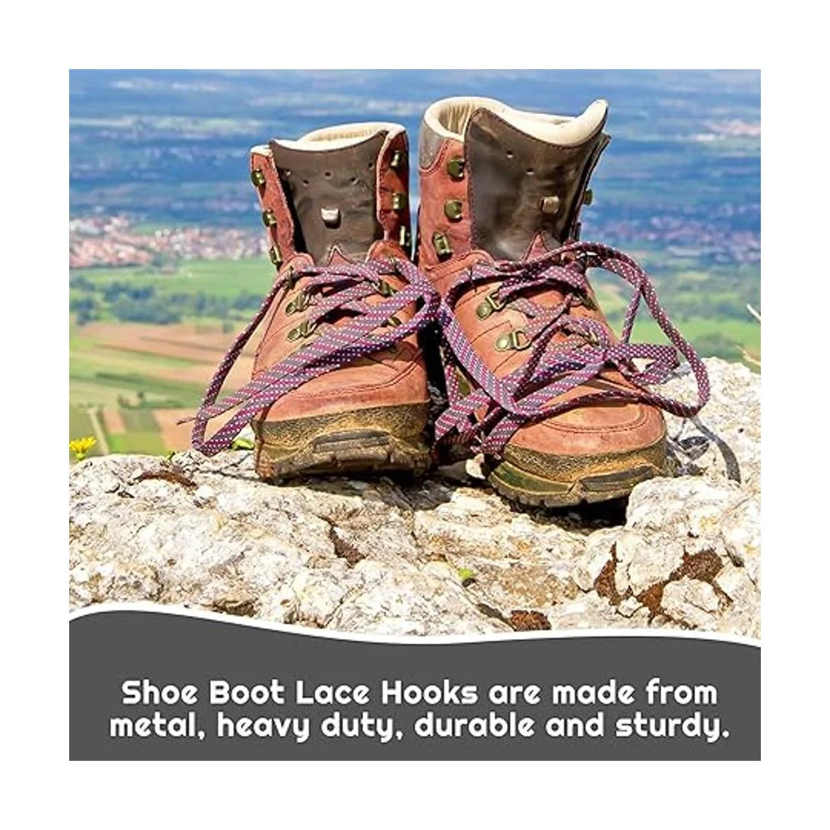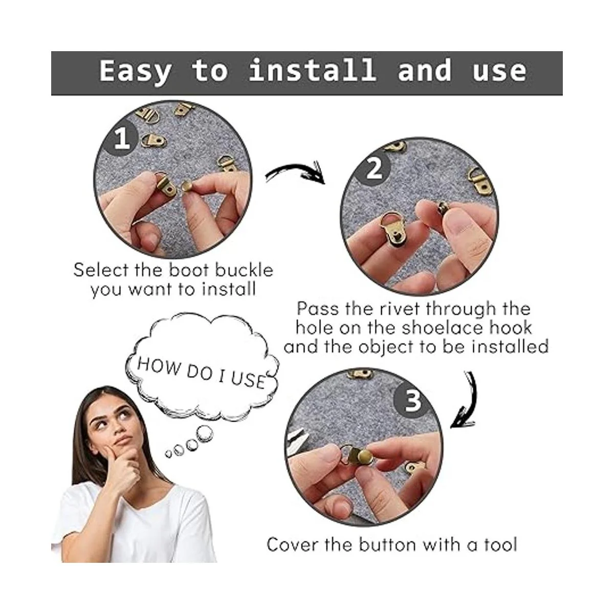 Fácil de usar: los ganchos de metal para cordones son muy fáciles de instalar y usar, puedes simplemente ajustar los ganchos y remaches con tus manos y presionarlos firmemente con alicates, para que permanezcan en tus botas firmemente sin que se caigan fácilmente, ahorrando tiempo y son prácticos