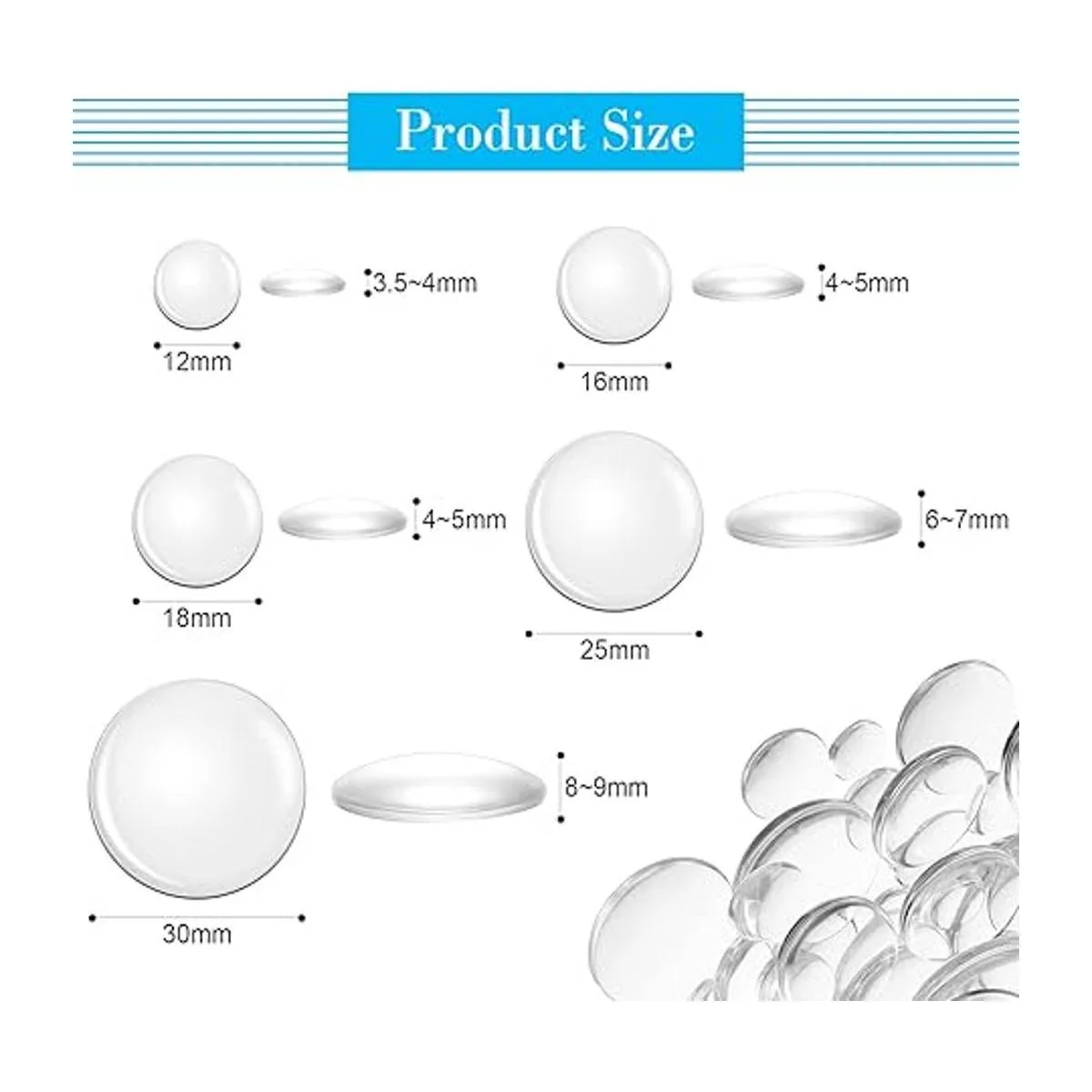 100 piezas de cabujones de cúpula de cristal transparente, cabujones redondos, azulejos de cúpula de cristal transparente para manualidades, parte trasera plana media redonda para hacer aretes, collares, anillos, joyas 0.472 in, 0.630 in, 0.709 in, 0.984 in, 1.181 in