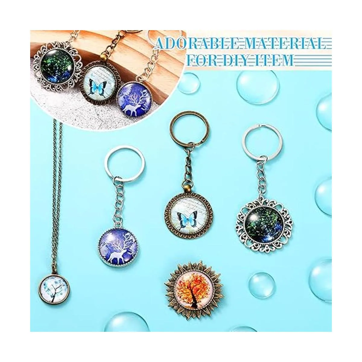 Una amplia gama de aplicaciones: estos cabujones redondos de cristal son un buen material para hacer colgantes de camafeo, joyas de fotos, manualidades, imán de nevera, llaveros, pulseras, broches, etc. Además, son adecuados para muchos artículos hechos a mano, ofreciendo mucha diversión en tu tiempo libre
