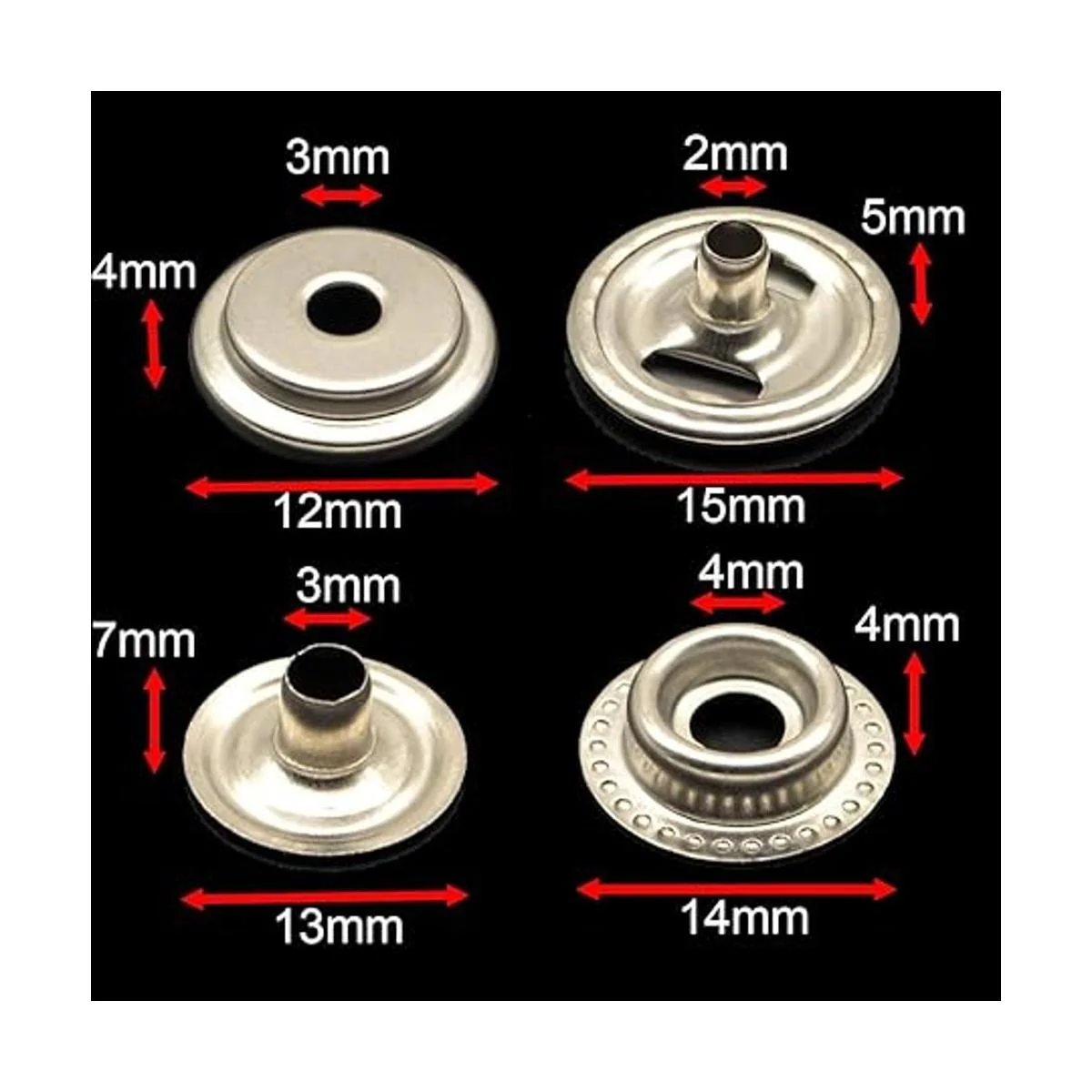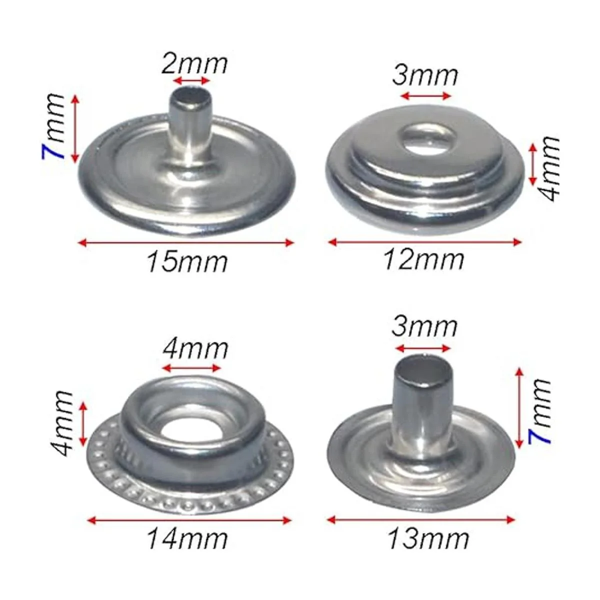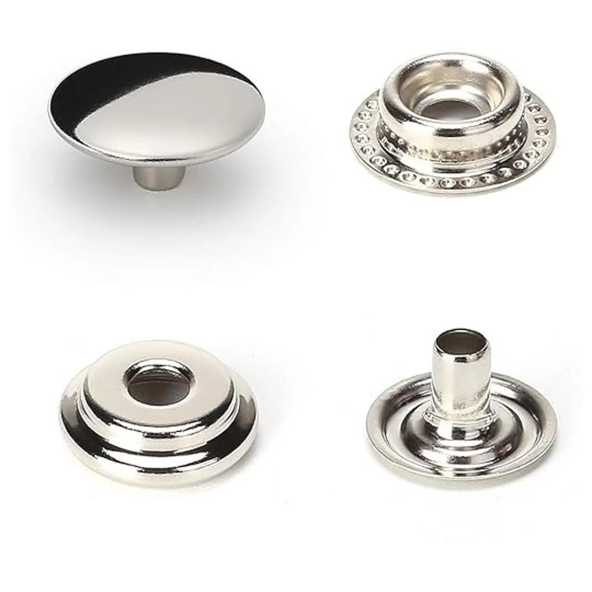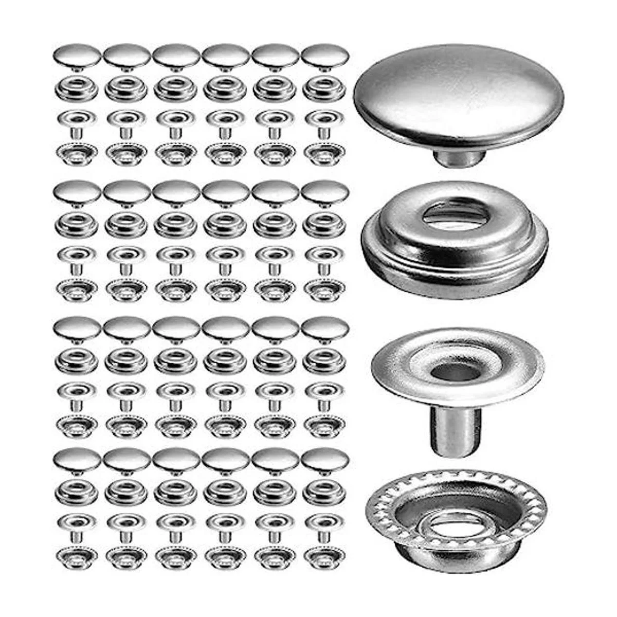 100 piezas de cierre de acero inoxidable de 0.591 in a presión, botón de tapa de botón para barco marino, línea de lona 24 4 componentes, 5 piezas para cada uno