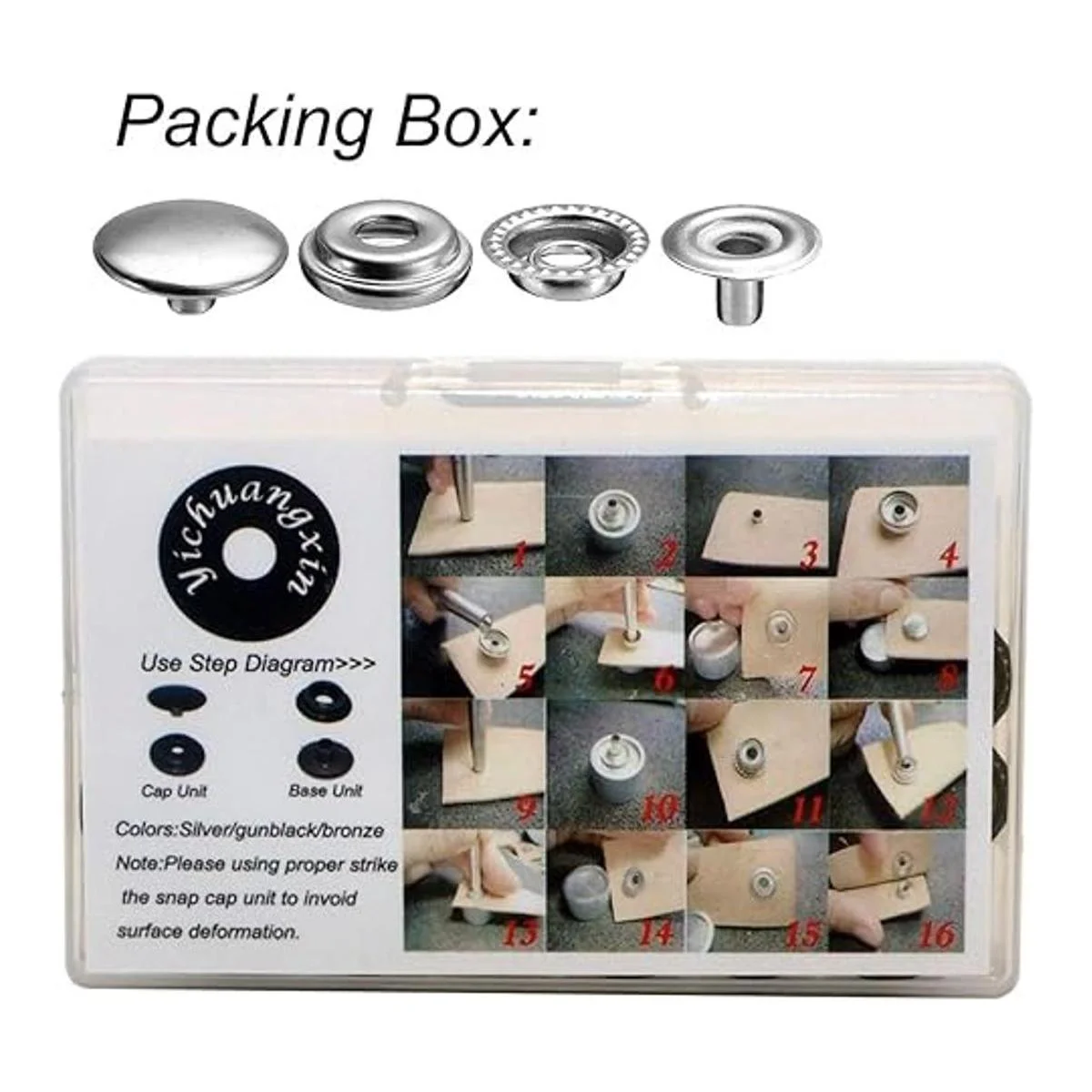 Aplicaciones: ambos lados de los remaches tienen una tapa que hace que se vea bien; estos remaches de cuero se pueden aplicar para manualidades o ropa como zapatos, sombreros, jeans, cortavientos, chaqueta de plumón, chaquetas, etc