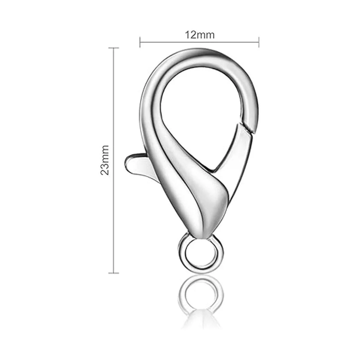 Cantidad suficiente: este paquete viene con 100 cierres de garra de langosta en color clásico de plata, cantidad suficiente y estilo elegante para que lo apliques en varios proyectos hechos a mano, lo que te brinda mucha comodidad