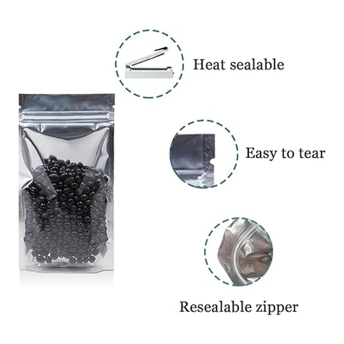 100 piezas de cierre frontal transparente de pie con cremallera frontal resellable de aluminio Mylar bolsa de embalaje de plástico para cremallera, cierre de paquete de sellado térmico con muesca desgarrada, almacenamiento de alimentos a largo plazo, 7.8 x 11.8 pulgadas