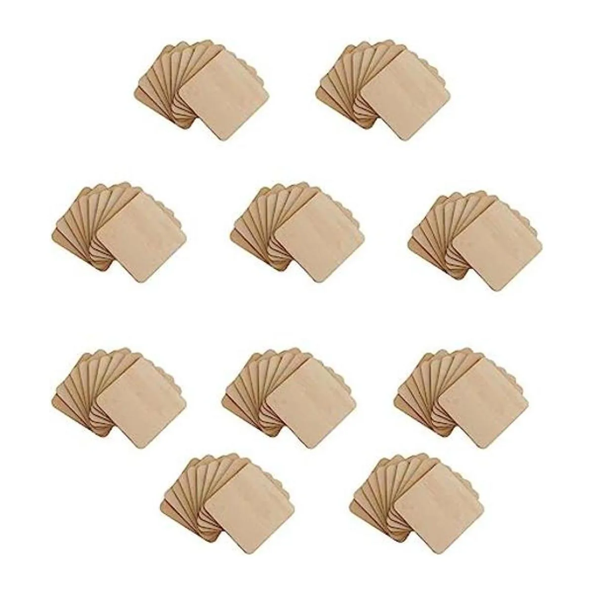 100 piezas de madera sin terminar de 0.8 in x 0.8 in sin acabar, recortes de madera en blanco, esquinas redondas, recortes de madera, adornos de madera sin terminar para manualidades, proyectos de bricolaje, decoración del hogar, etiquetas de regalo