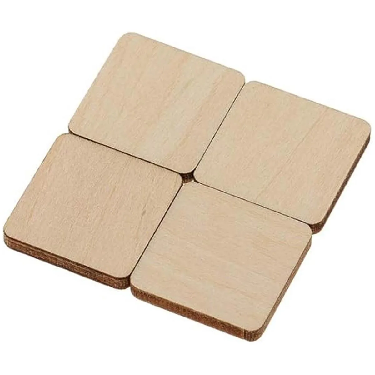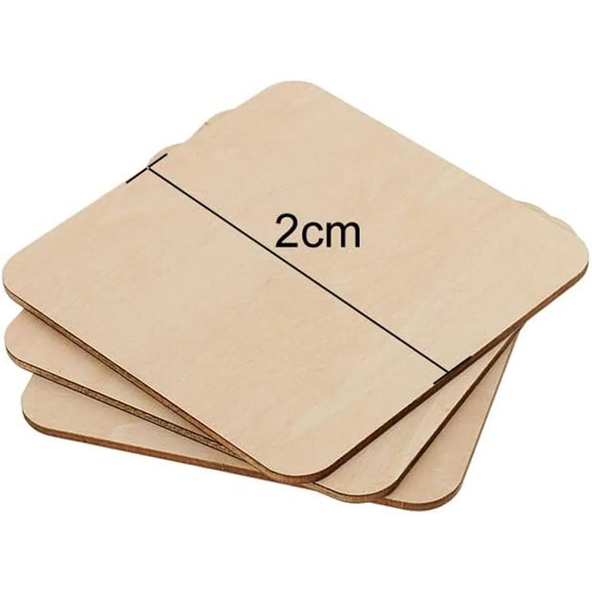Tamaño de cada pieza de madera: 0.8 in x 0.8 in; grosor: 0.118 in; total de 100 piezas de madera sin terminar, suficiente para satisfacer tus necesidades de manualidades y decoración.