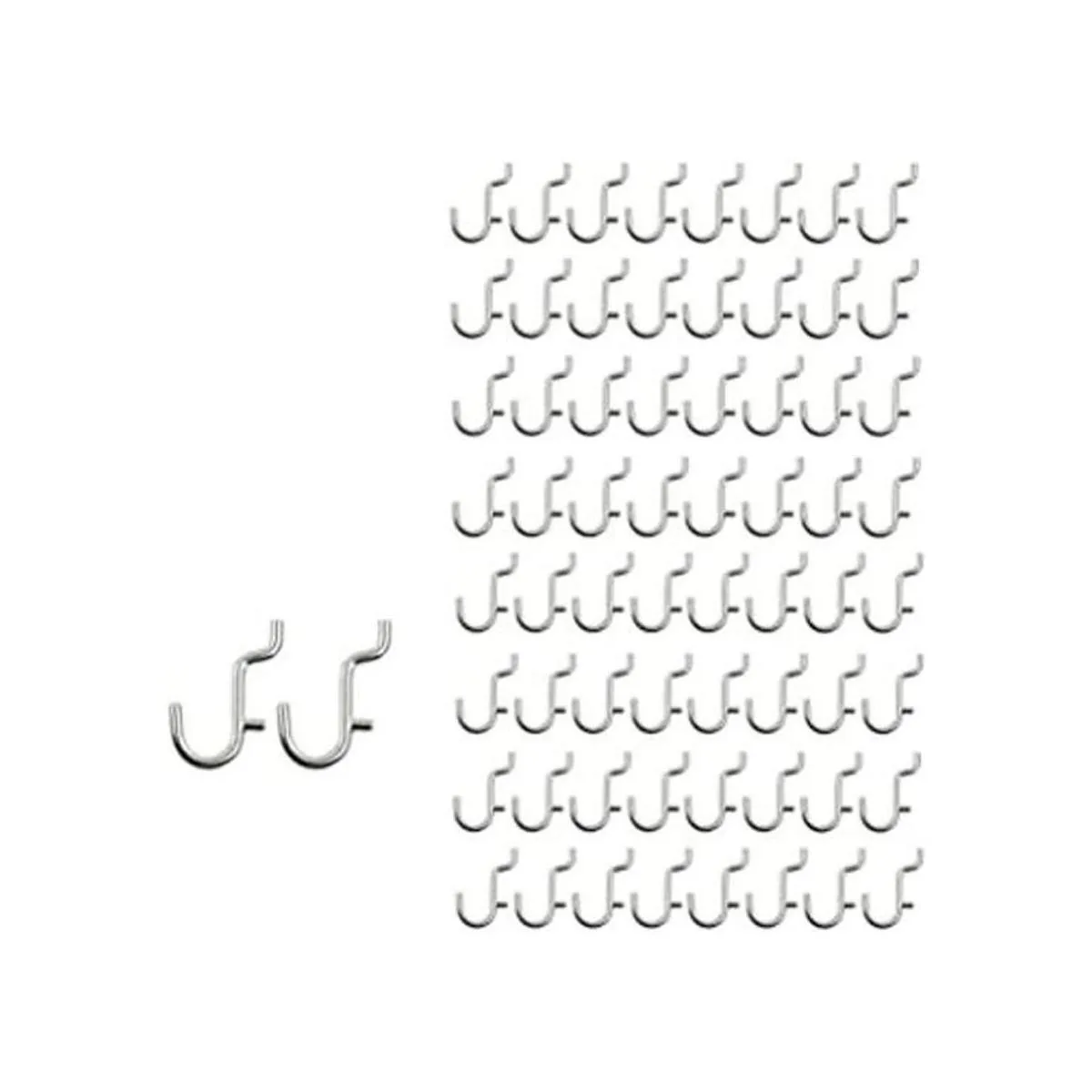 Paquete de 100 ganchos de tablero de clavijas estilo J que tienen un sistema suave FlexLock para proteger tableros de clavijas