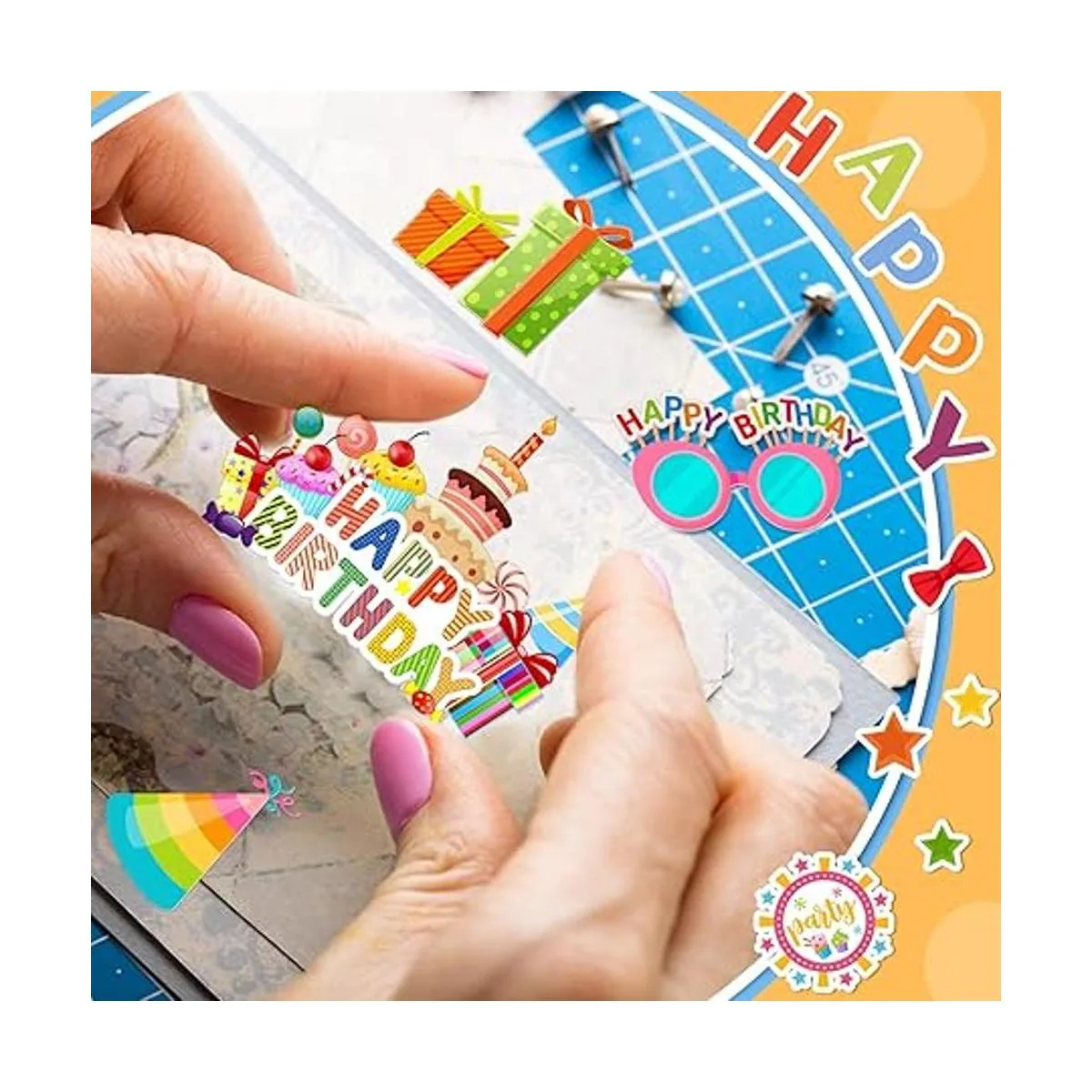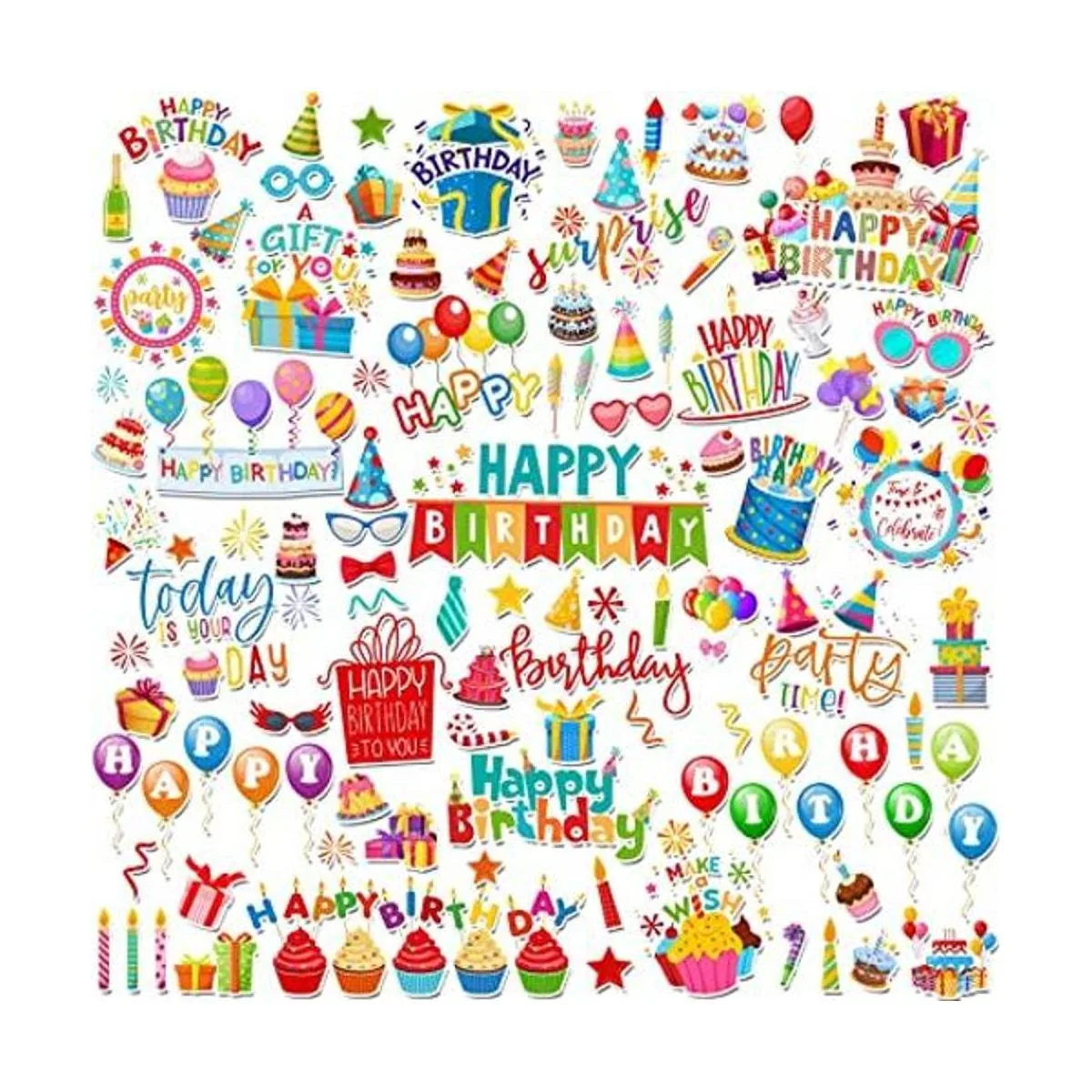 100 piezas de papel de cumpleaños, troqueles de cartulina, álbumes de recortes, recortes de cumpleaños, álbumes de recortes, cuadernos de recortes, maleta, calendario, adornos para laptop, suministros para manualidades, decoración