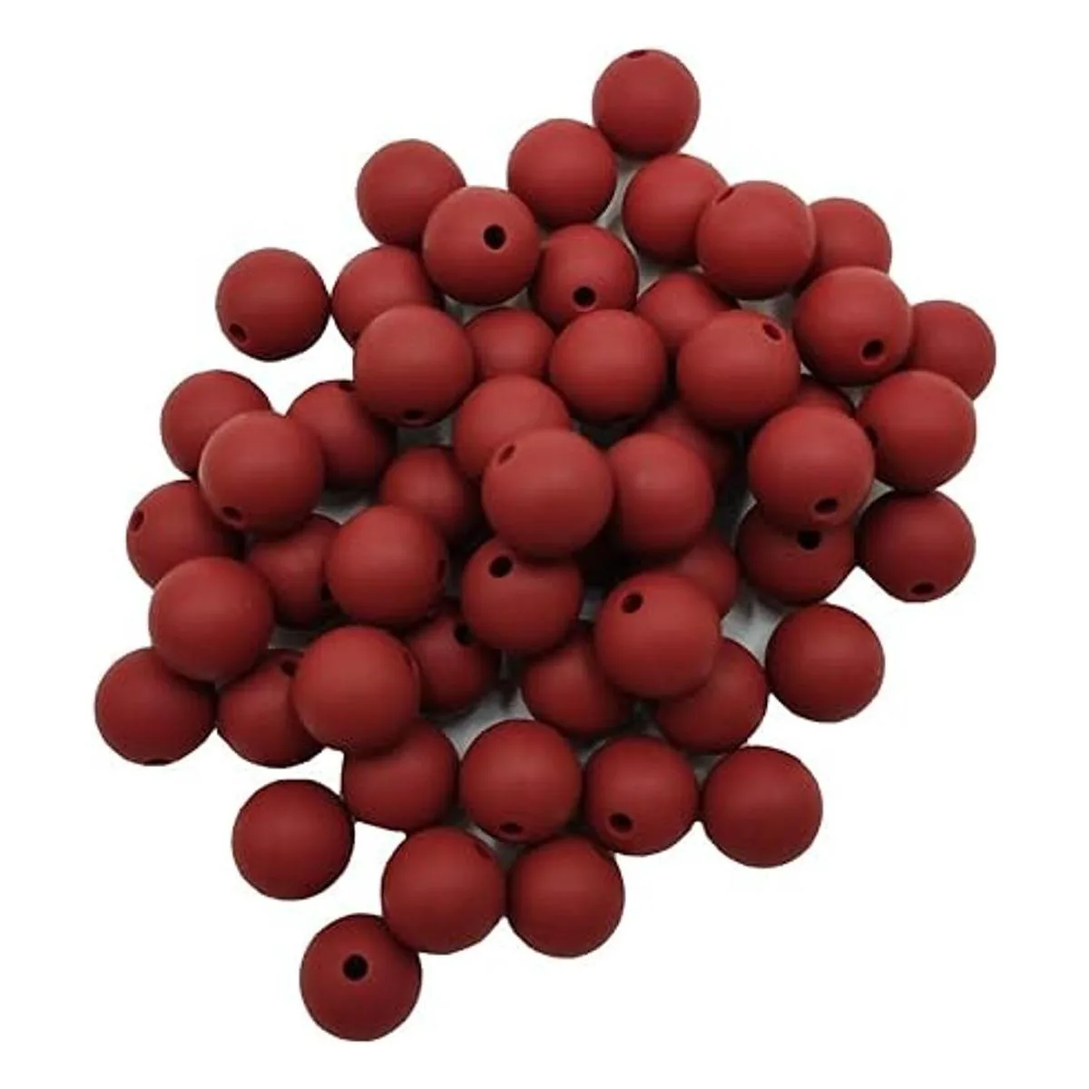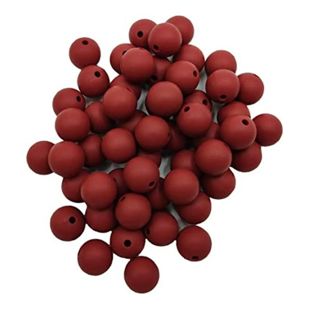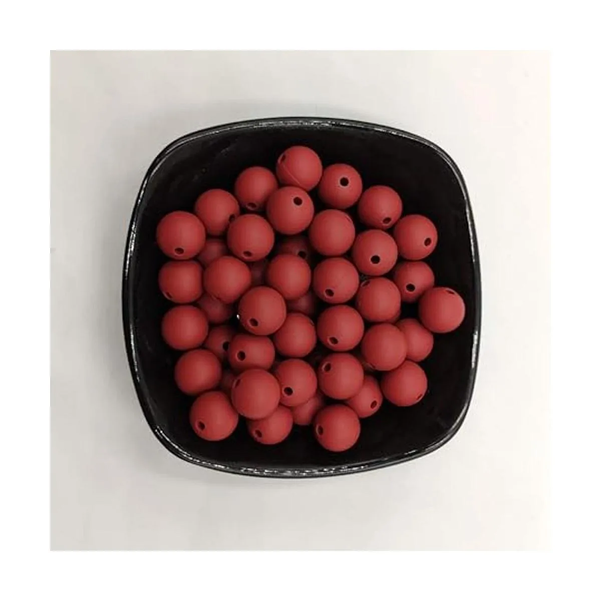 100 piezas de silicona redonda de color granate de 0.591 in de perlas de decoración de casa de campo, collar a granel para mamá, joyería de bricolaje