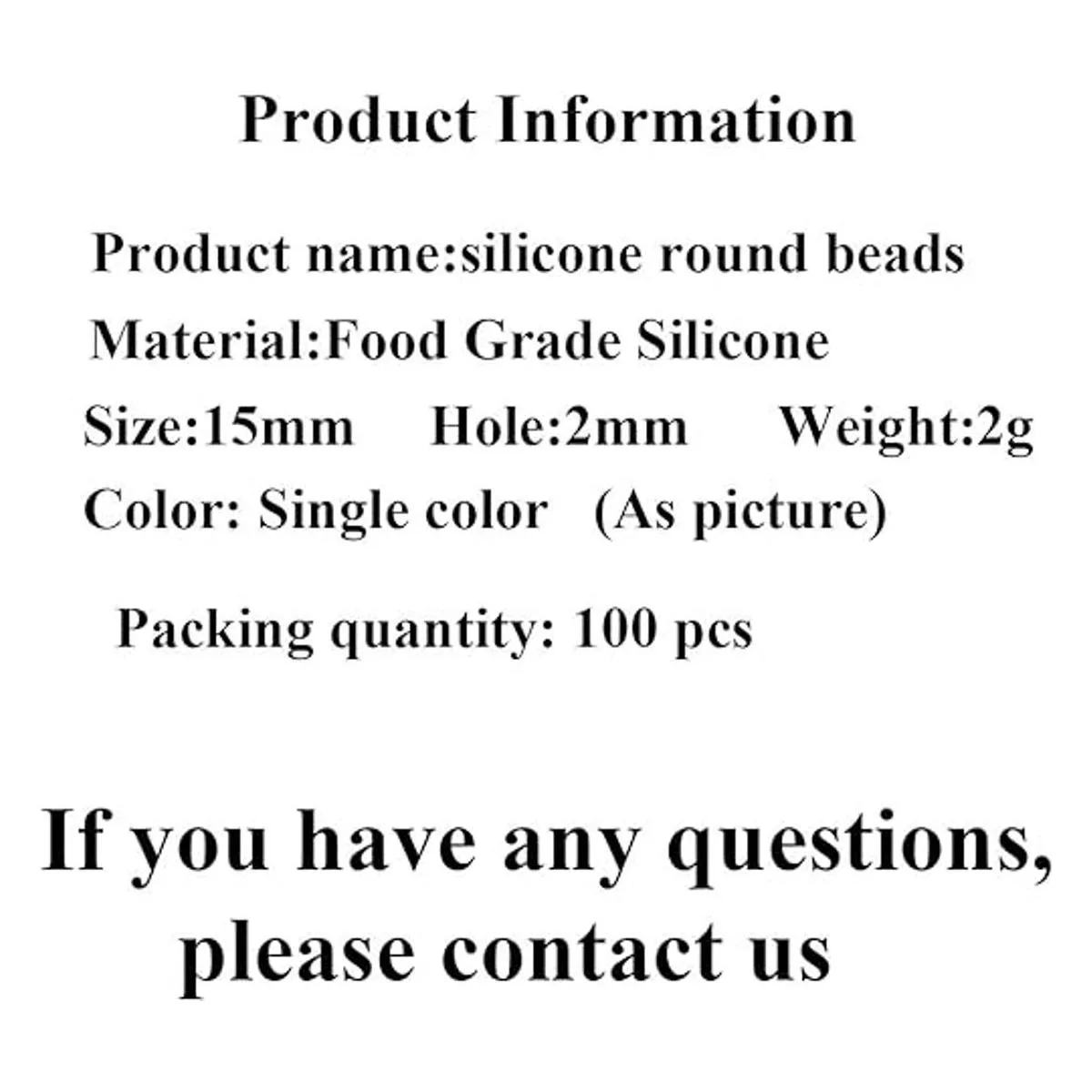 Accesorio de perlas de silicona DIY: cuentas redondas de silicona de 0.591 in para llavero. Agujero: 0.079 in. Color único: como se muestra en la imagen. Cantidad del paquete: 100 unidades