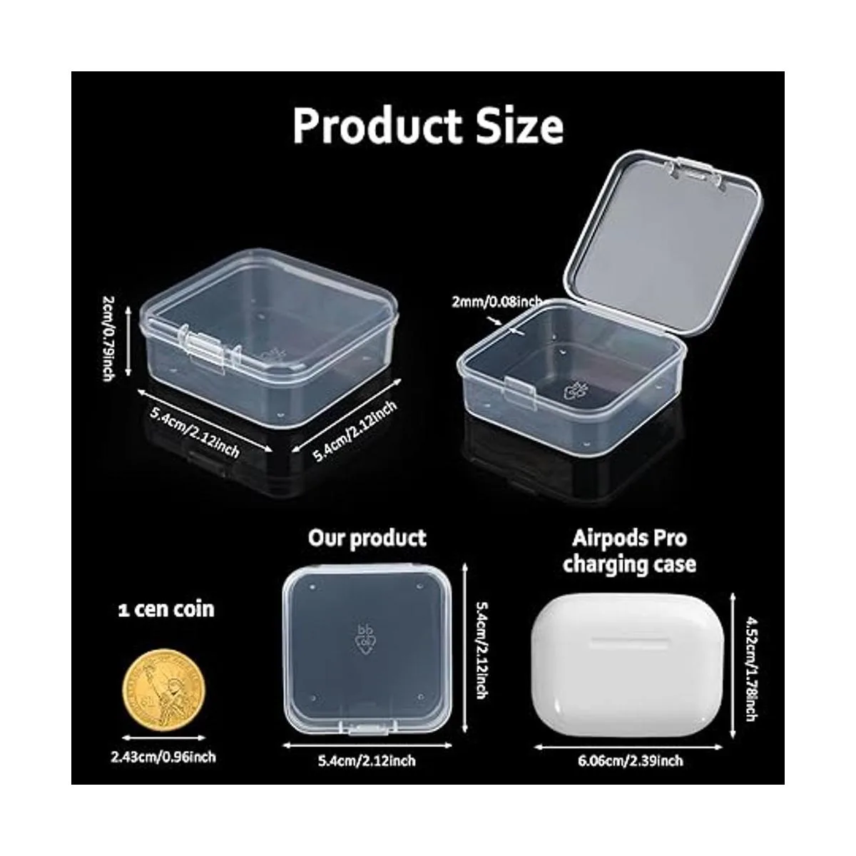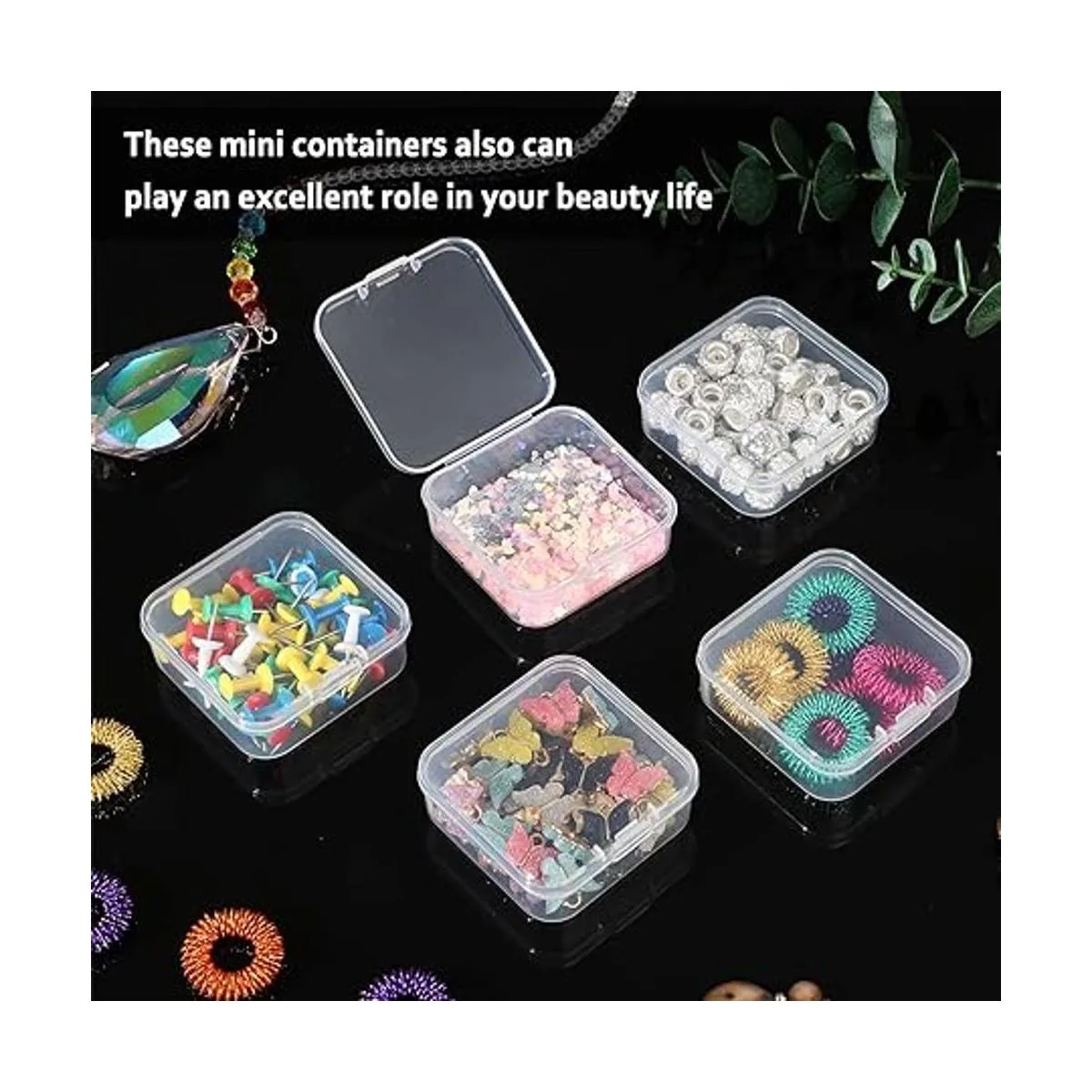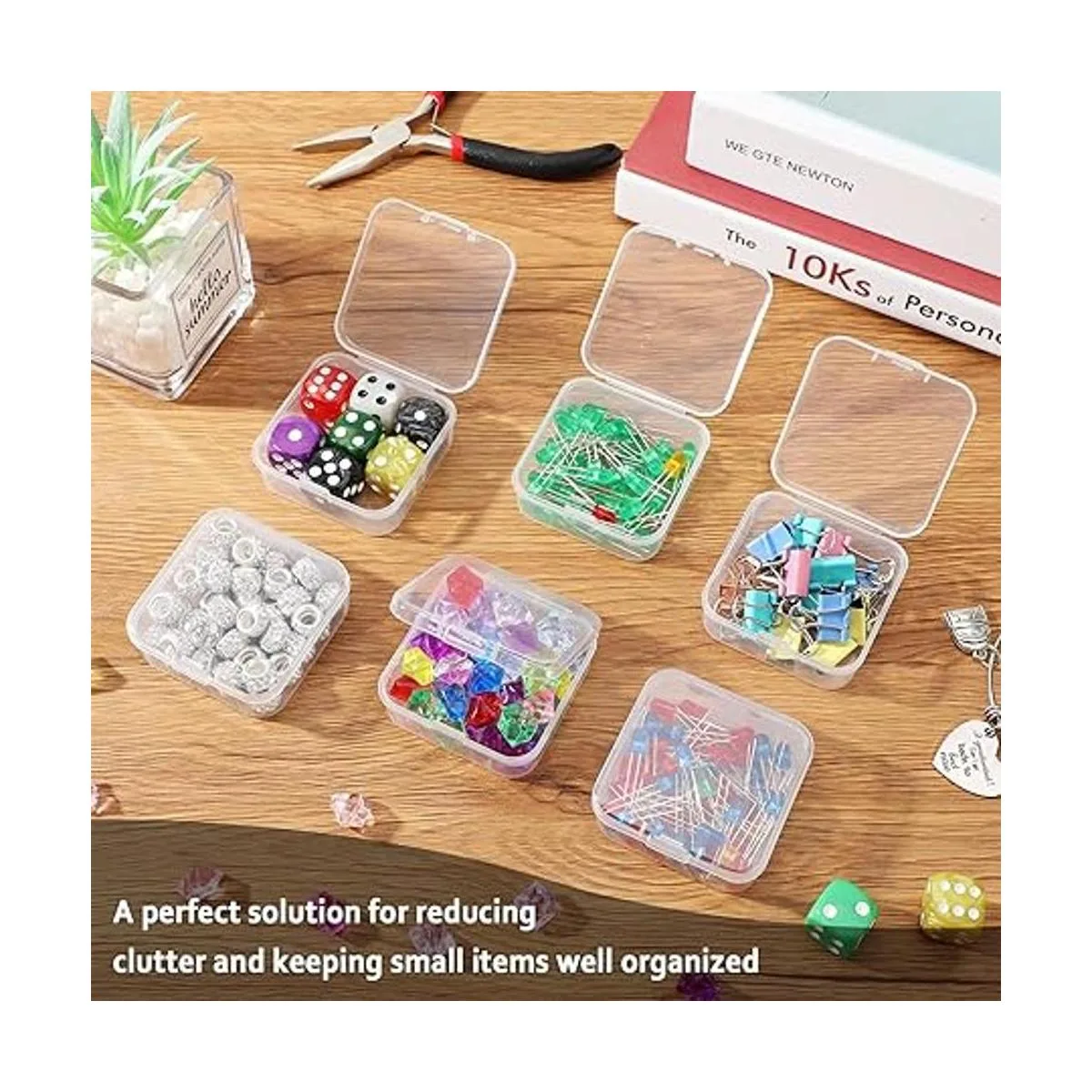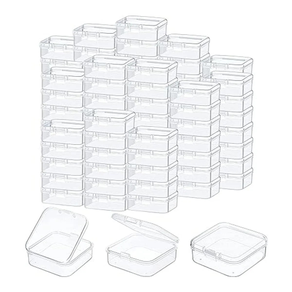100 piezas pequeñas de plástico transparente con tapa con bisagras, caja pequeña de plástico transparente con caja pequeña de plástico, mini cajas de almacenamiento cuadradas para manualidades, organizadores para artículos pequeños, cuentas y organización de joyas
