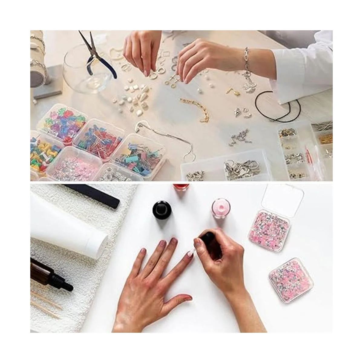 Abundante de usar: recibirás 100 recipientes de plástico pequeños con tapas, suficientes para satisfacer tus diversas necesidades de almacenamiento; el tamaño de cada caja transparente es de aproximadamente 2.1 x 2.1 x 0.8 in largo x ancho x alto, aproximadamente 0.32 oz/0,3 onzas, tamaño adecuado y peso ligero para almacenar en casa o poner bolsas y llevar para bricolaje proyectos o actividades de vacaciones