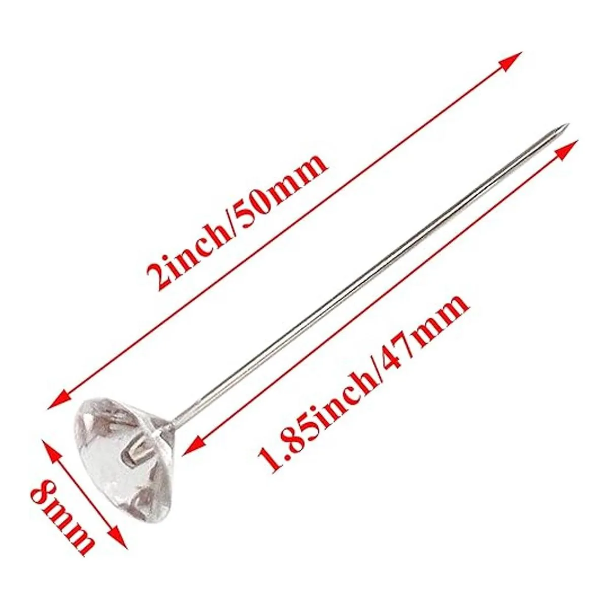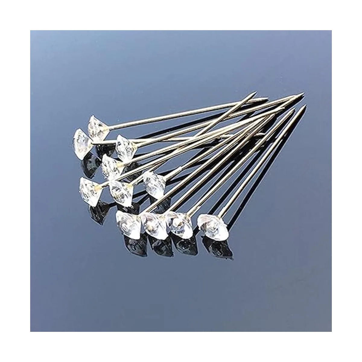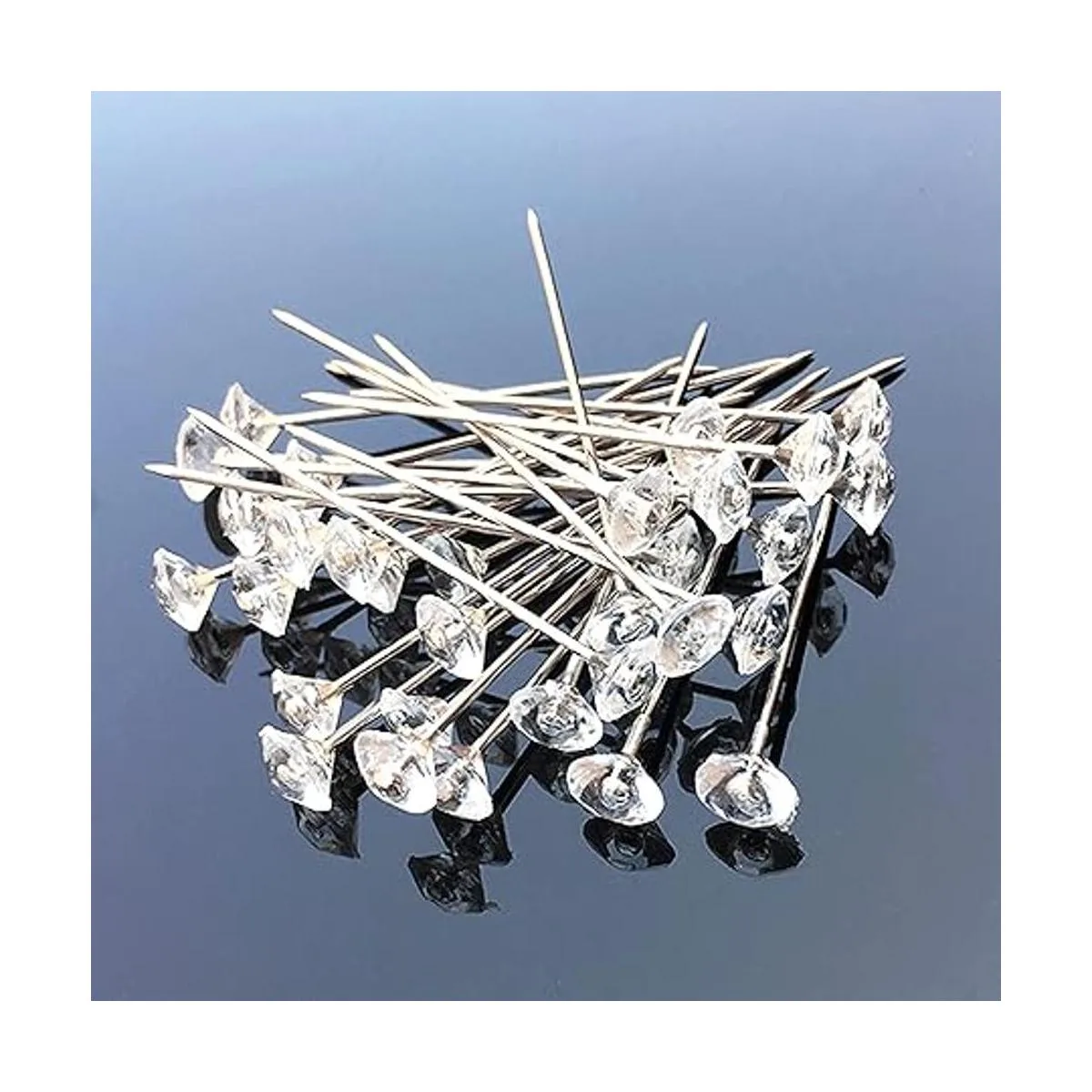 100 pines de ramillete Boutonniere de 2 pulgadas, ramo de flores, diamantes de imitación florales, cabeza de cristal, pasadores rectos transparentes para boda, novia, accesorios para el cabello, decoración de joyas, manualidades, costura