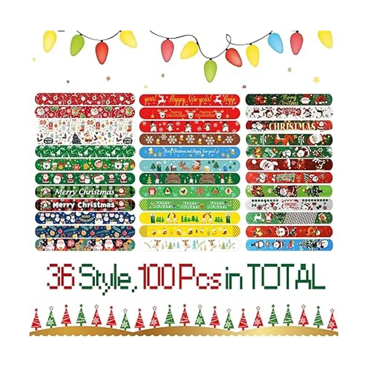 El paquete incluye: el paquete tiene 100 pulseras de Navidad. Es adecuado para una maravillosa fiesta de Navidad y traer diferentes pulseras de juguetes para tu Navidad. También es una buena opción para rellenar calcetines de Navidad.
