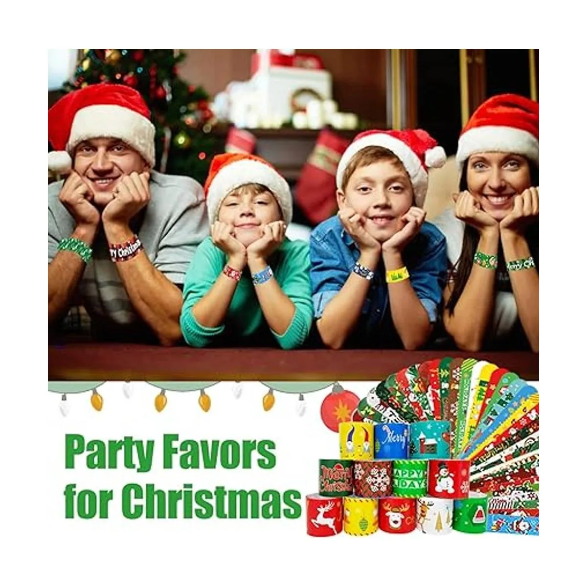 100 pulseras de bofetada de Navidad, recuerdos de fiesta de Navidad para niños, rellenos de calcetines de Navidad, juguetes de Navidad para niños y niños, suministros de relleno de bolsa de regalo para fiestas