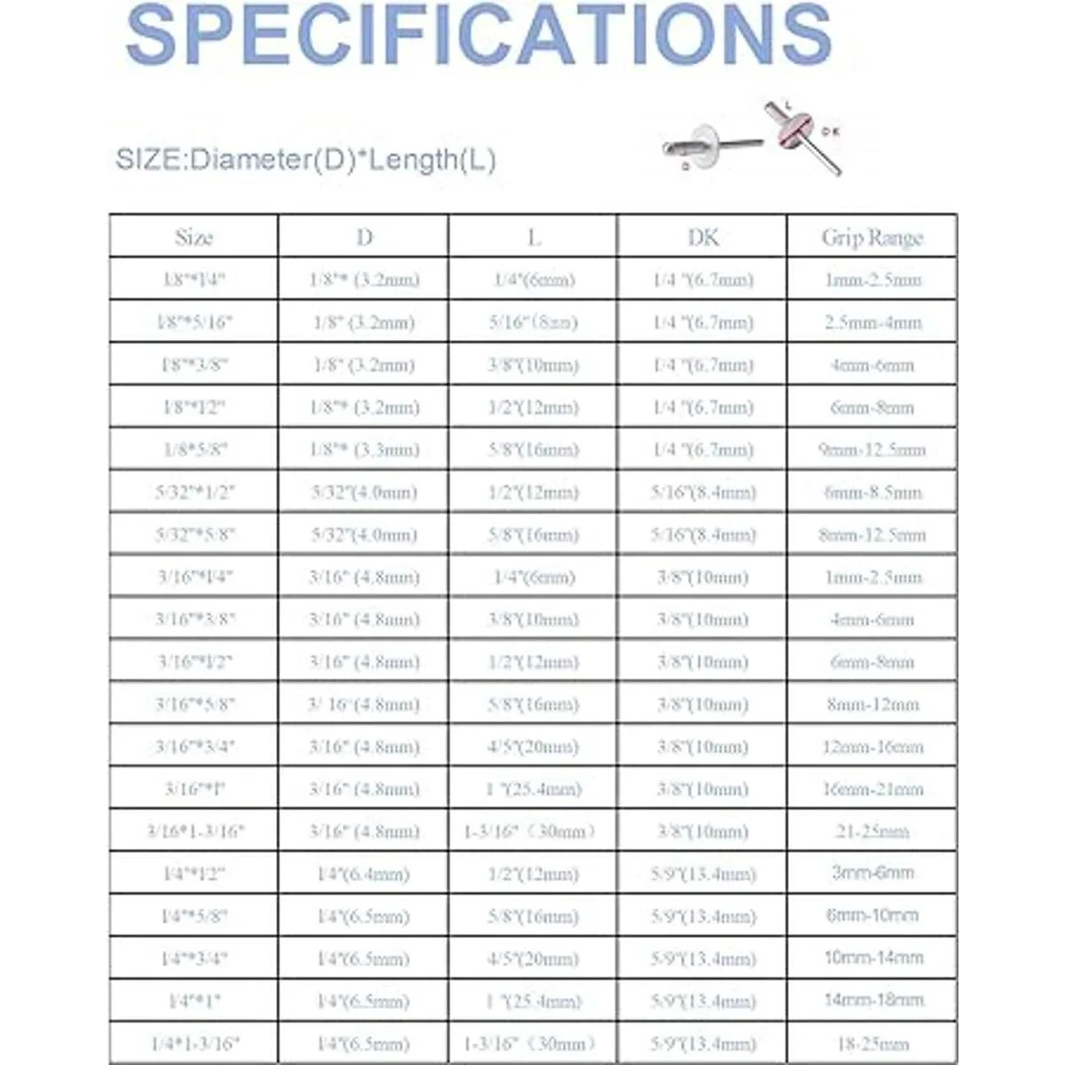 Los remaches están hechos de mango de aluminio y mandril de acero.