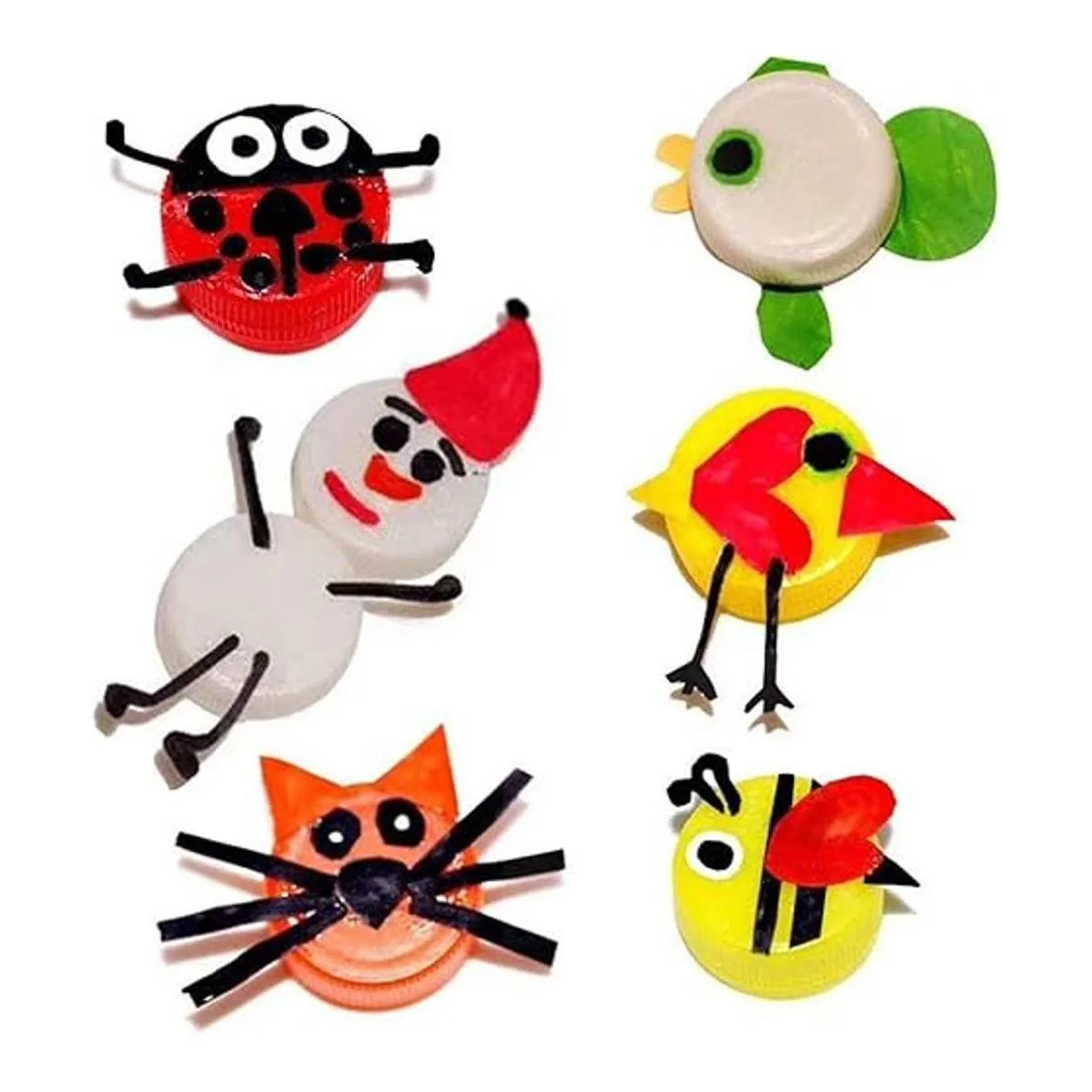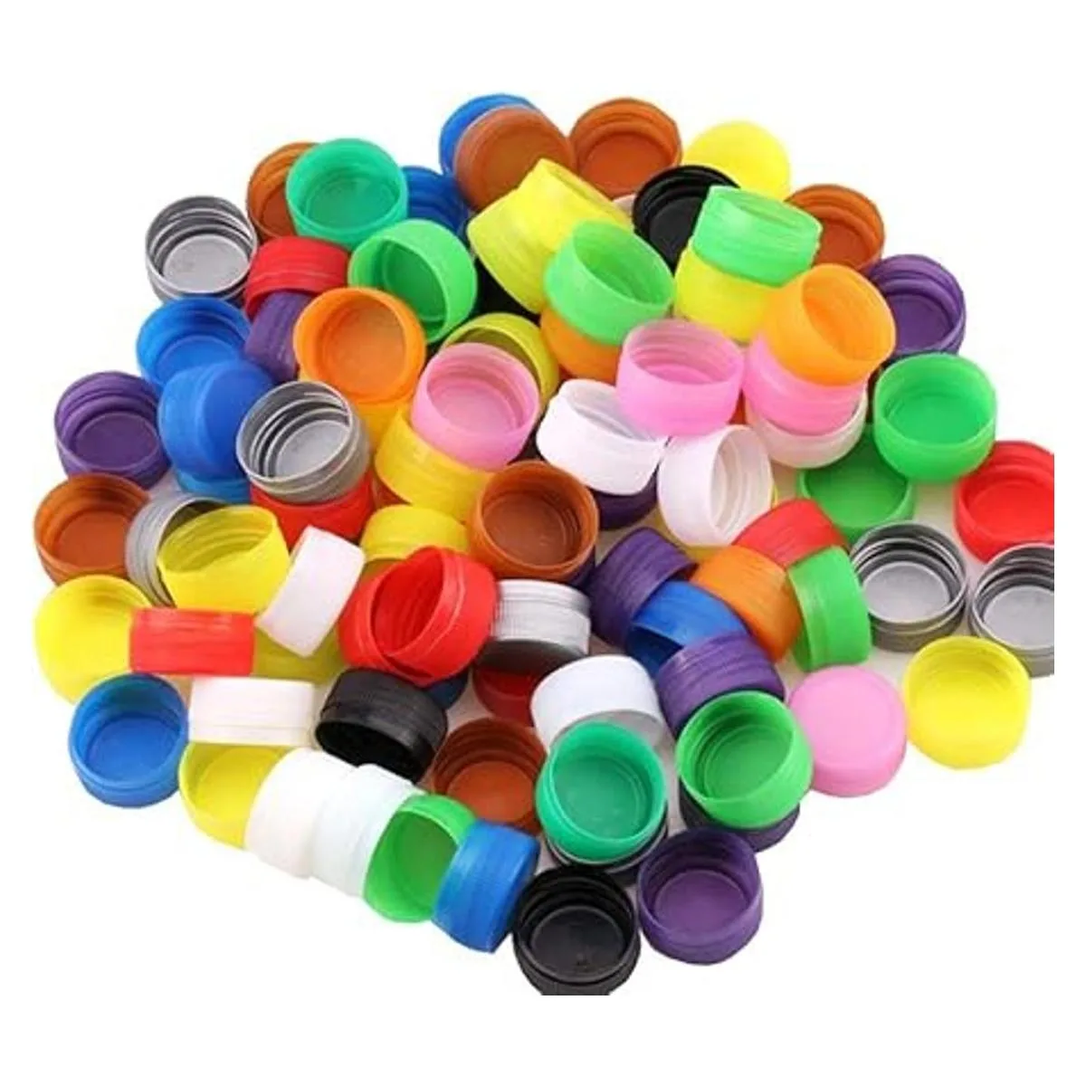 100 tapas de botellas de plástico para manualidades, protección del medio ambiente, para niños, desarrollo de inteligencia, palos de jardín de infantes color mezclado