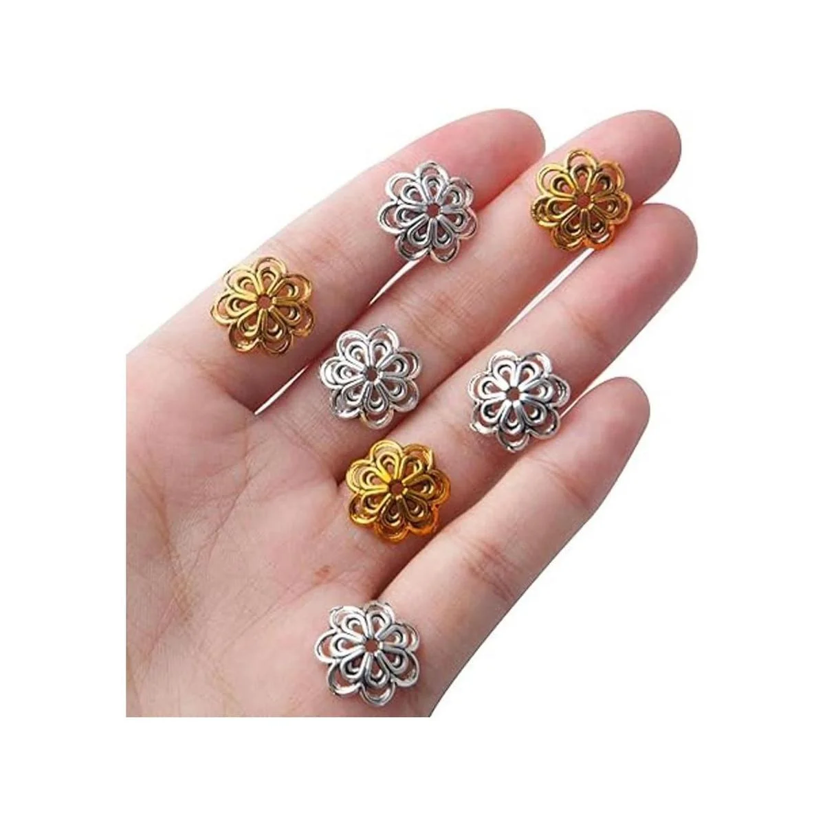 100 tapones de cuentas con forma de flor y cuentas huecas de aleación de filigrana de cuentas para pulseras y pendientes de joyería, manualidades