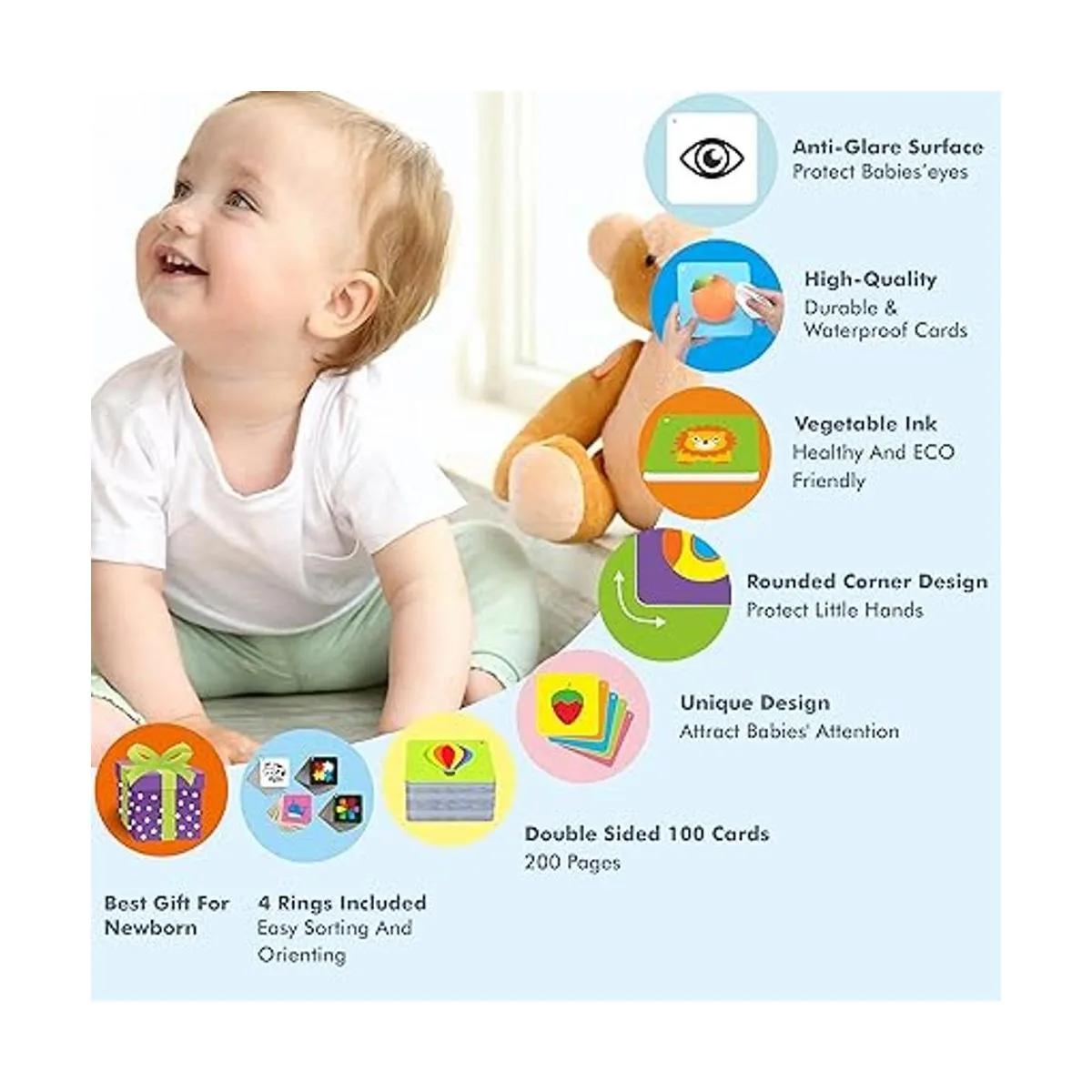 100 tarjetas de 200 páginas color negro y blanco colorido 3D para bebé recién nacido regalo 4 niveles 036 meses, 5.5 x 5.5 pulgadas