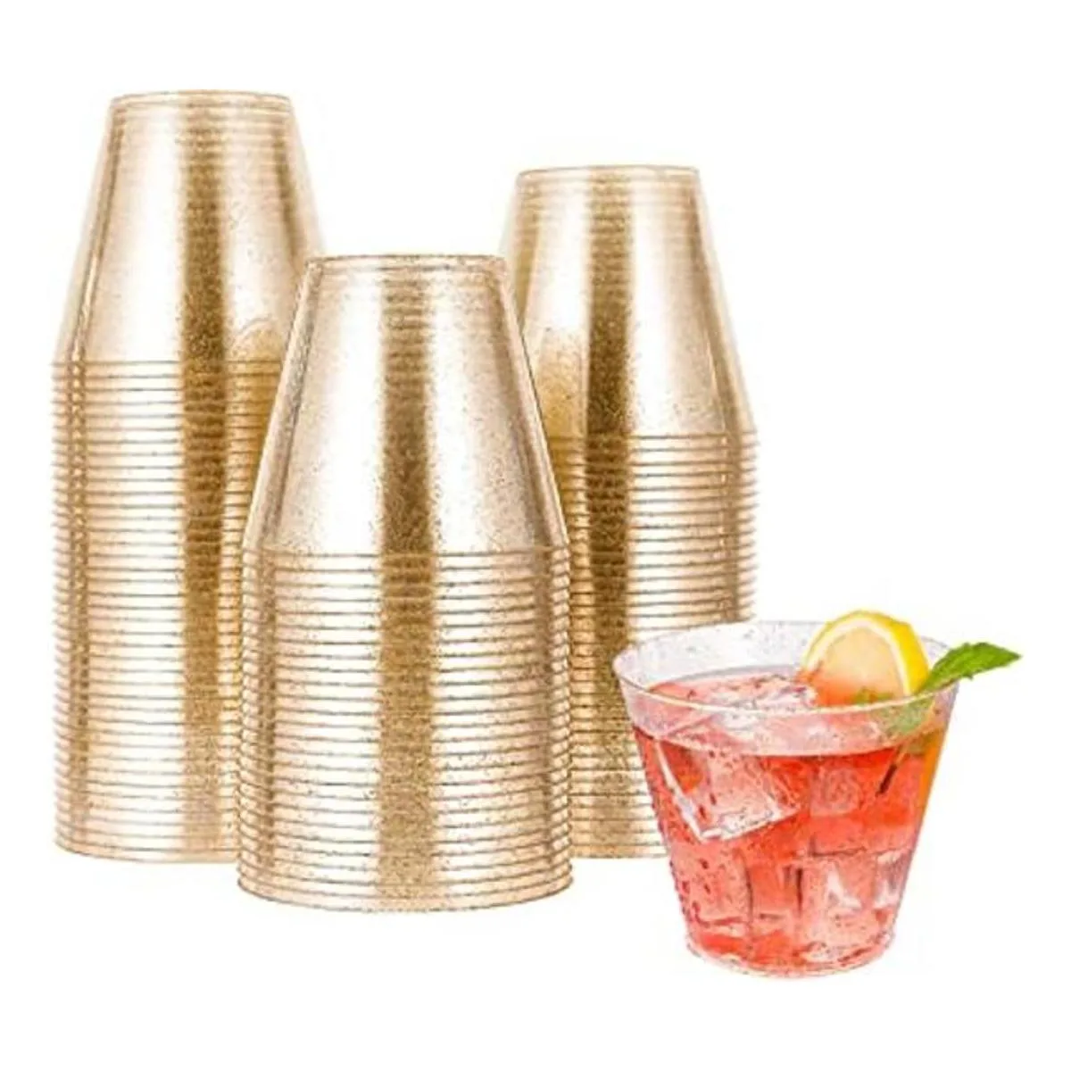 100 vasos de plástico dorado de 9 onzas vasos de plástico