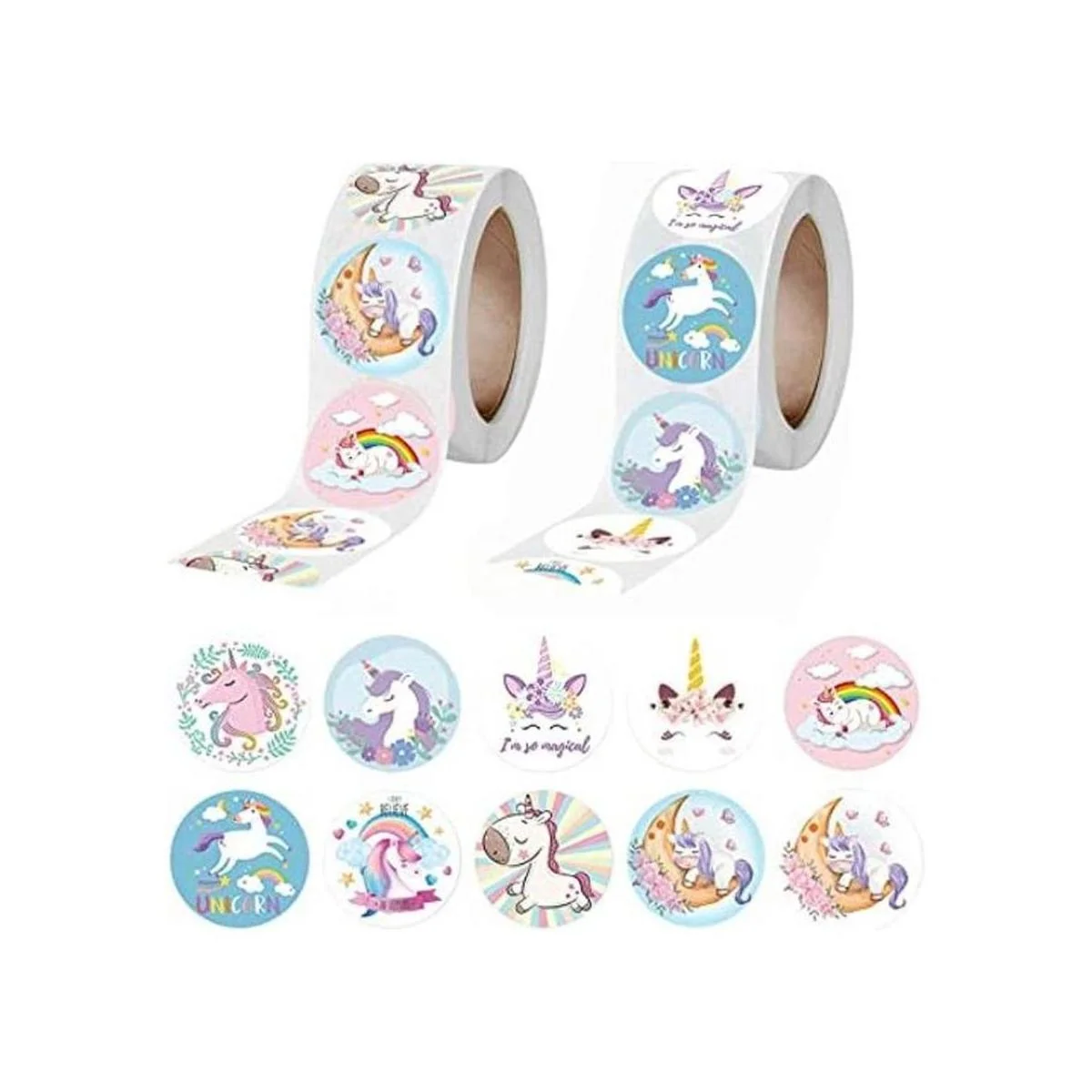 Lo que obtendrás: recibirás 2 rollos/1000 calcomanías de unicornio, tiene 10 diseños. Cada calcomanía mide aproximadamente 1.0 in de diámetro, comprueba el tamaño antes de comprar.