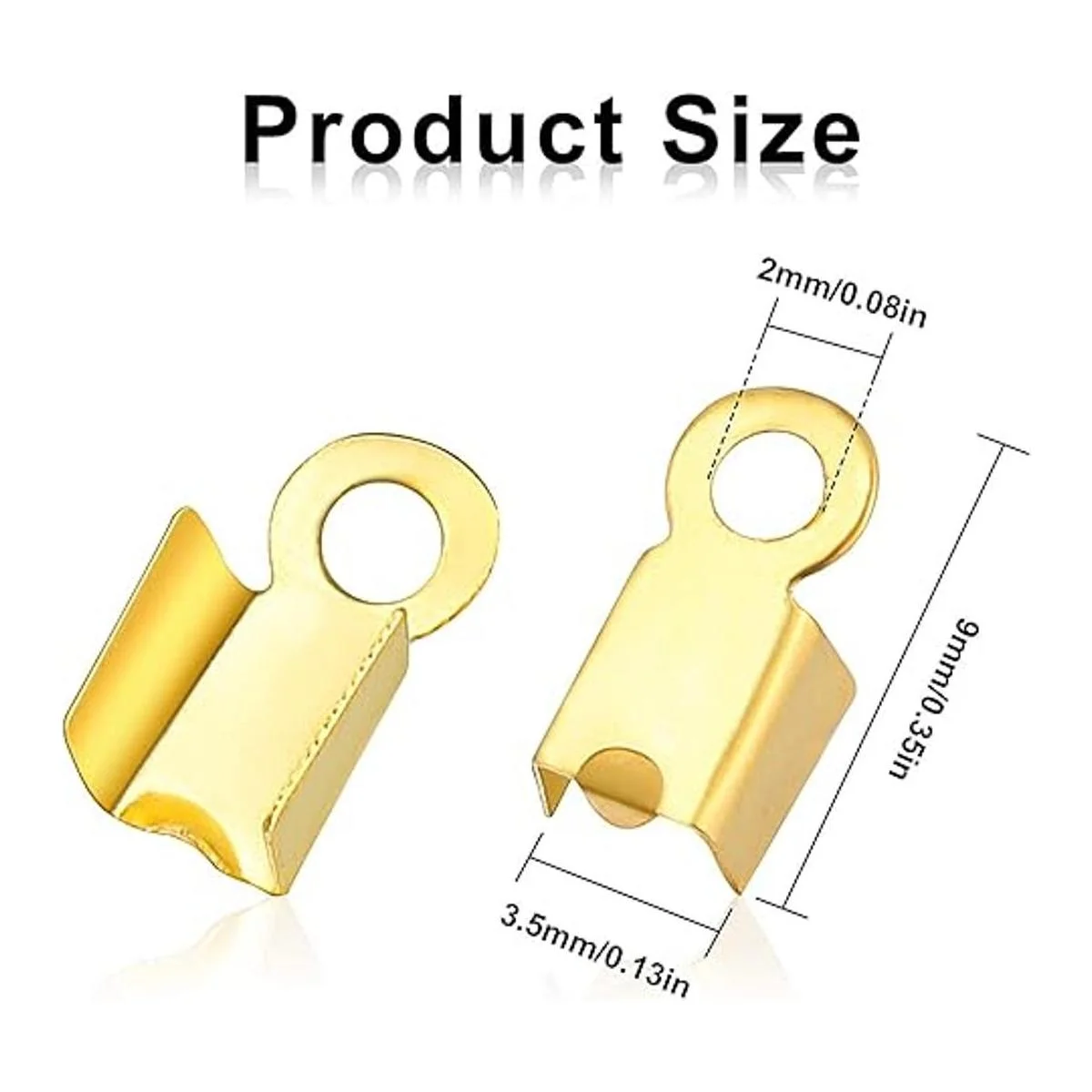 1000 piezas de extremos de cable plegables, puntas de extremo de crimpado, tapas de extremo plegables, puntas de cierre de cinta de cuero, conector de joyería para fabricación de joyas, 0.14 x 0.35 pulgadas, 5 colores