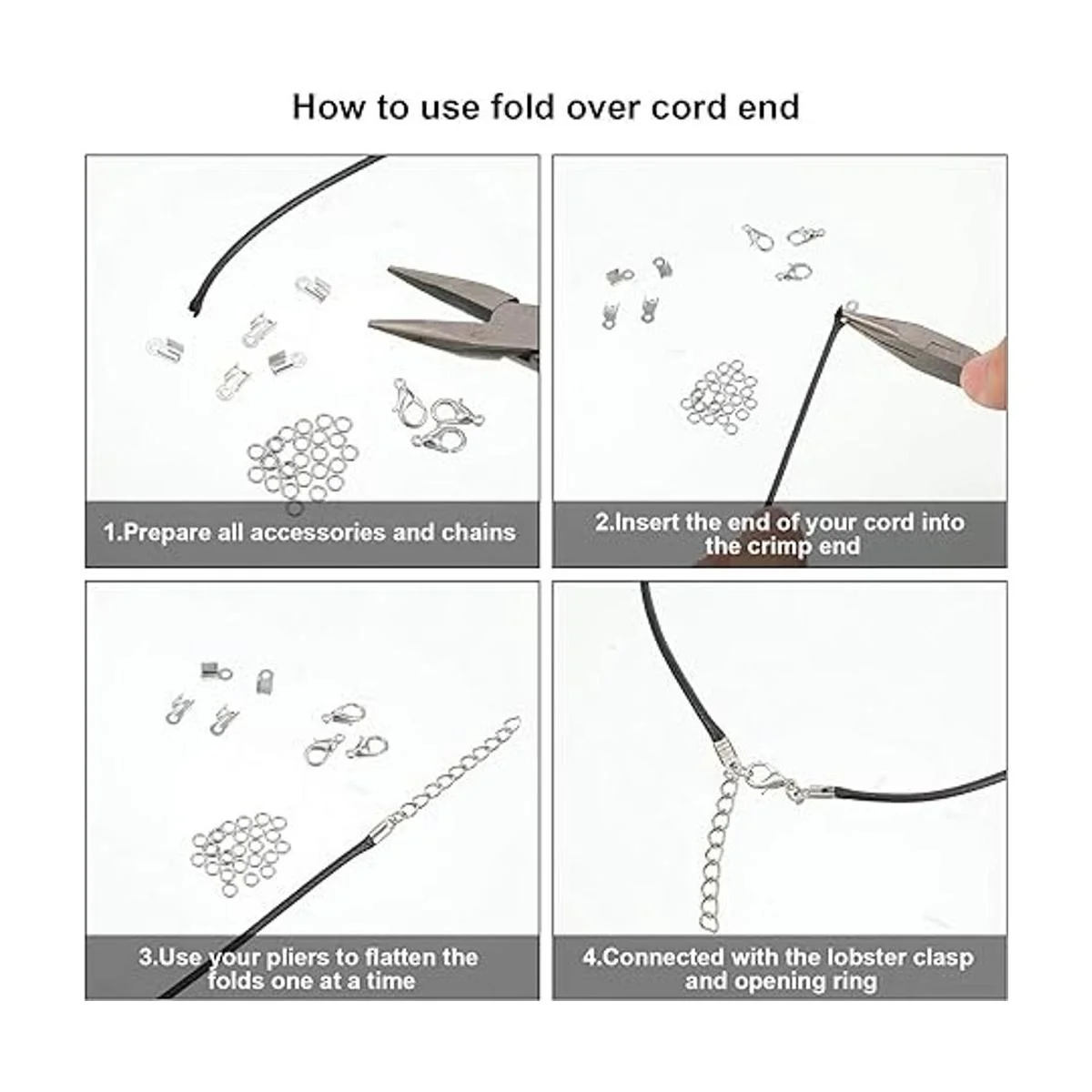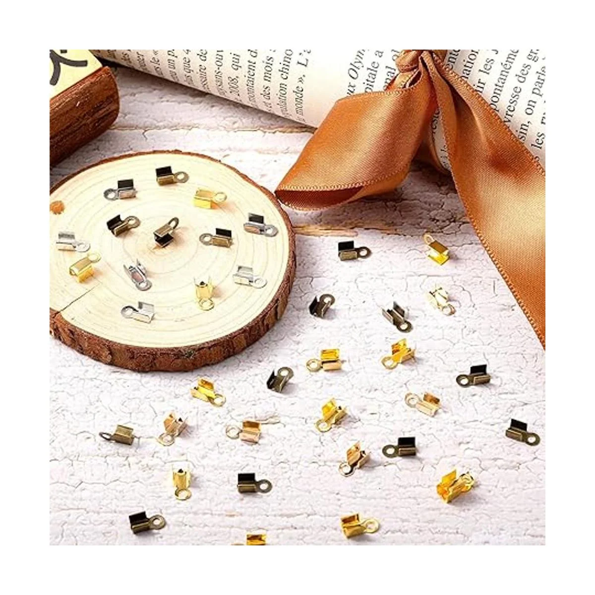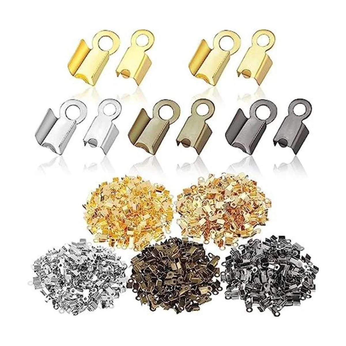 Gran cantidad: recibirás 1000 extremos de cordón plegables en 5 colores en total, 200 piezas para cada color, con una gran cantidad de accesorios para hacer joyas, puedes completar tus proyectos de fabricación de joyas; los lados se pueden plegar o engarzar, alrededor de la parte posterior de tu material de cuerda