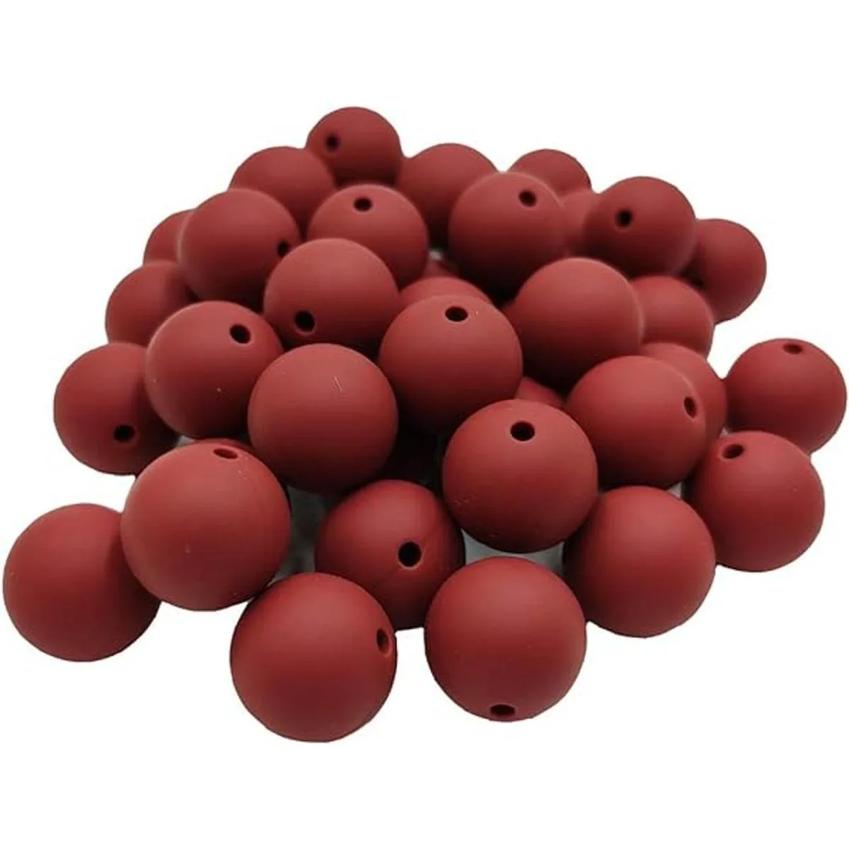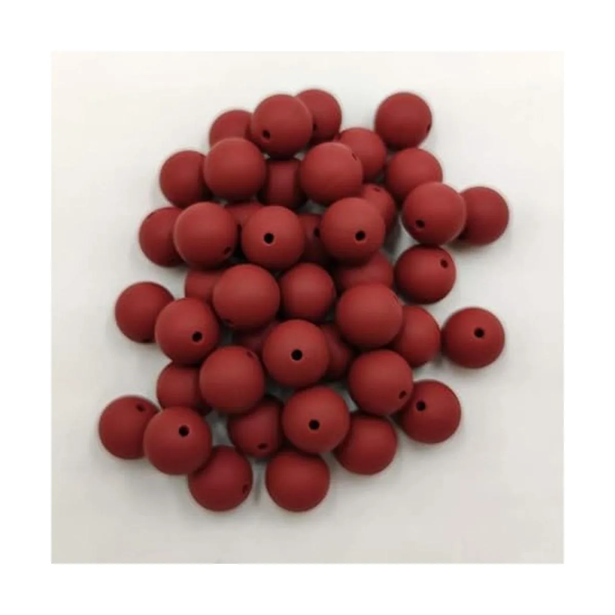 100pcs Granate Color Silicona Perlas Redondas Sensoriales 0.591 in Silicona Perla Granel Collar Madre DIY Joyería Fabricación Decoración