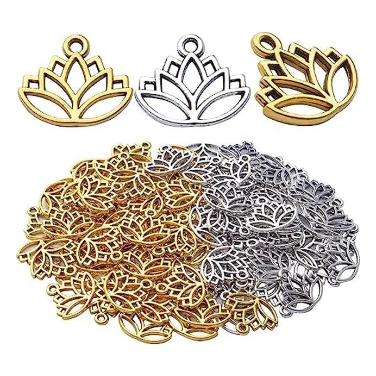Abalorios de loto: los colgantes están diseñados en forma de loto hueco, el loto es un símbolo de sagradeza, pureza y felicidad. Diseño delicado que añade brillo y belleza extra a tus joyas.