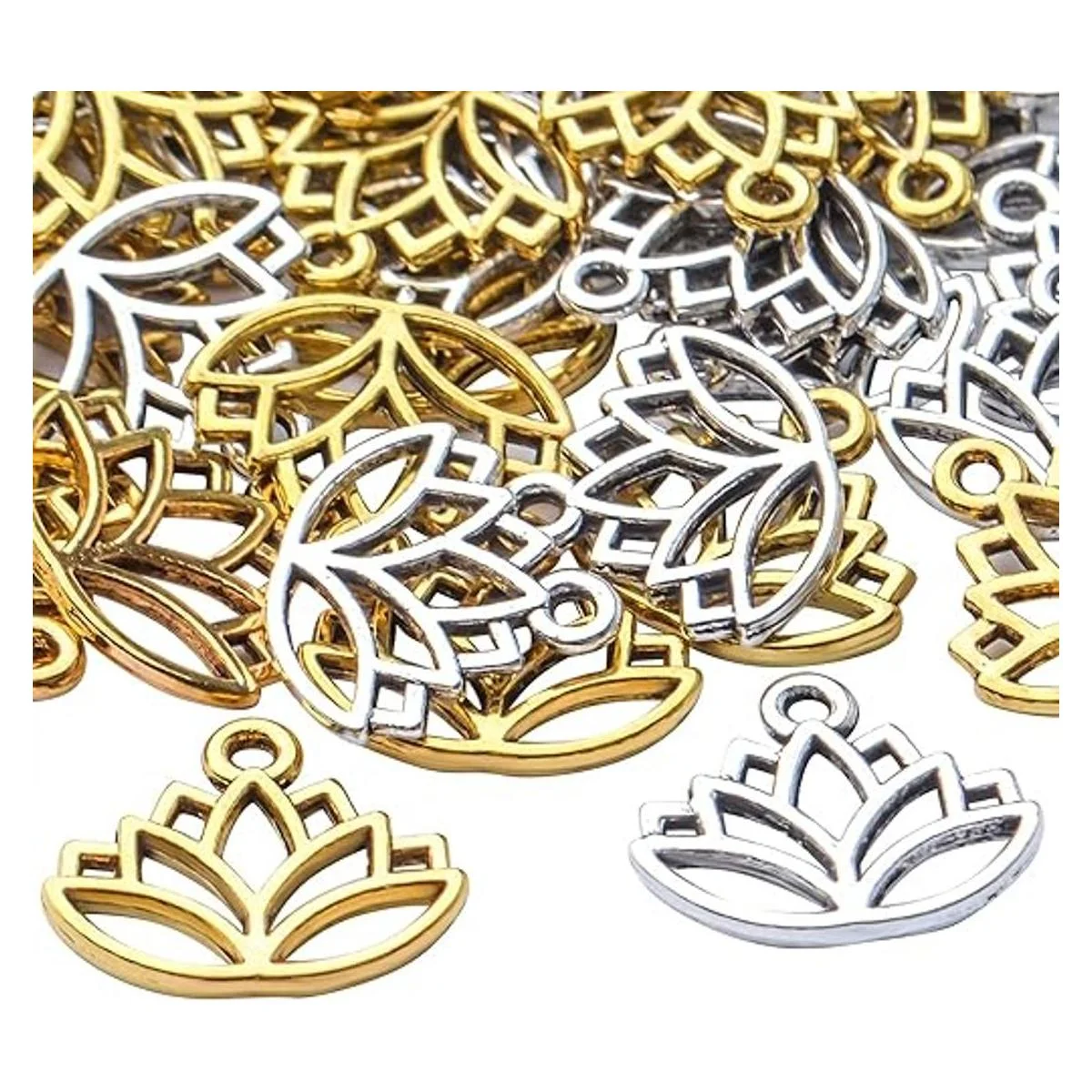 100pcs Lotus Charm Colgantes Aleación Yoga Lotus Flor Charms Perlas Charms Colgantes Artesanía Suministros para DIY Collar Pulsera Joyería Fabricación Accesorio