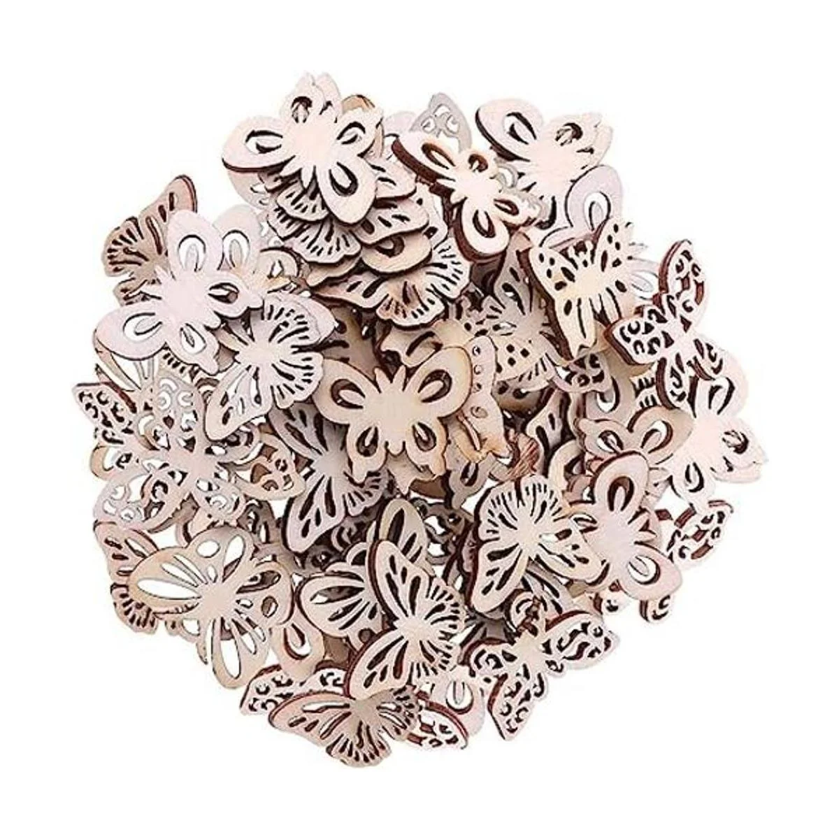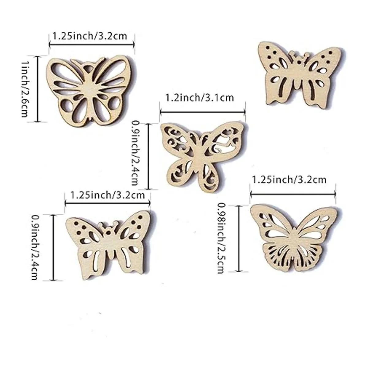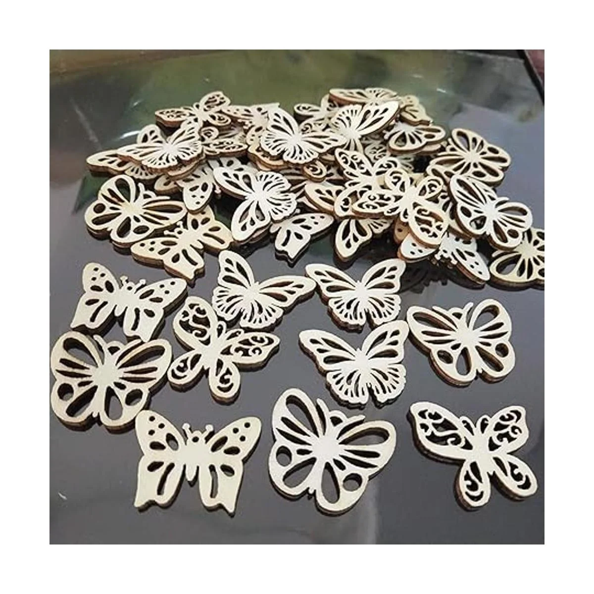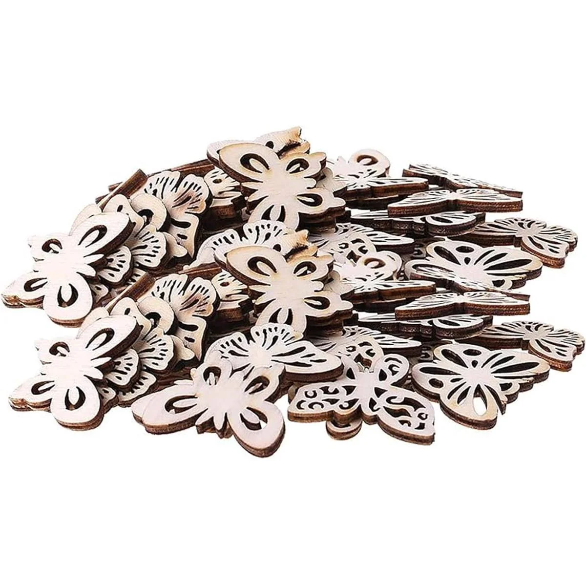 100pcs Mini Mariposa en Forma de Madera DIY Recorte Rebanadas de Madera Adornos Regalo Inacabado Adornos de Madera Decoración del Hogar