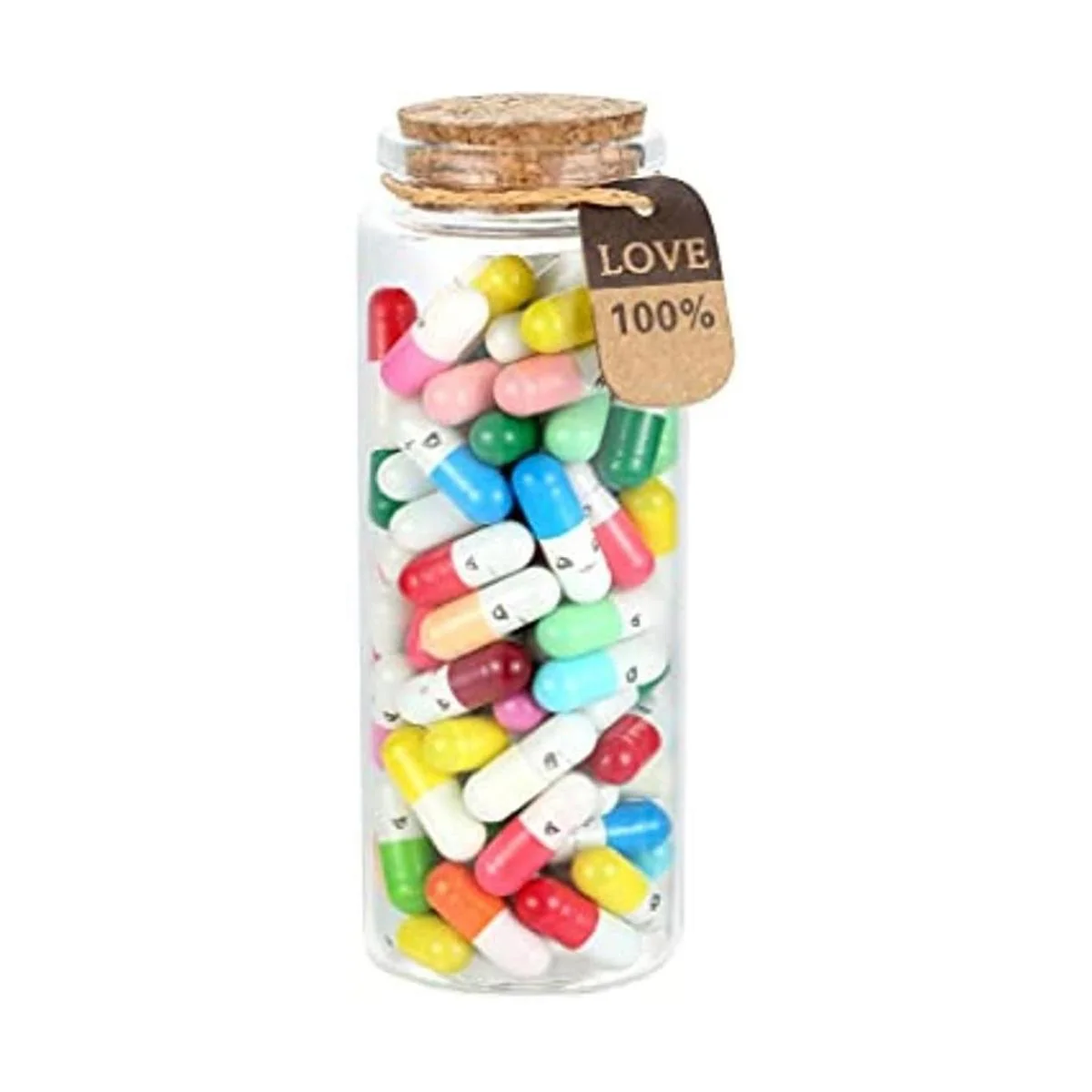 101 letras de amor con mensaje de cápsula de plástico, letras de amor en botella de deseos, regalo para aniversario, San Valentín y relaciones de larga distancia, colores mezclados