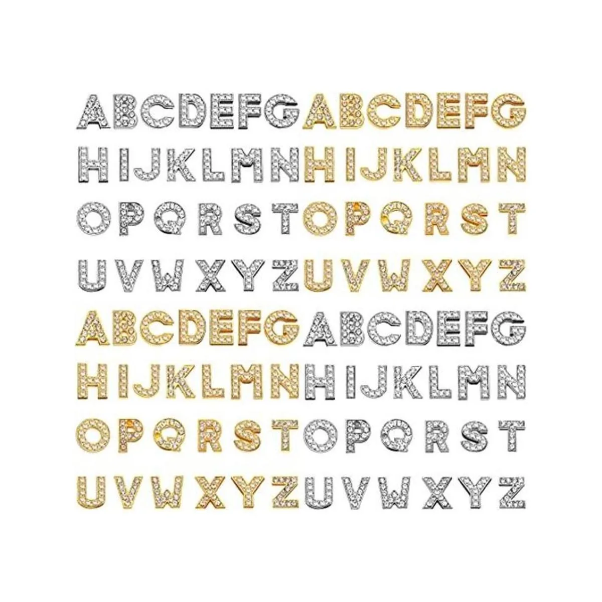 104 dijes de diamantes de imitación con letras del alfabeto AZ de 0.31 pulgadas 8 mm, para manualidades de aleación, pulseras, collares, gargantillas, joyería, dijes dorado y plateado